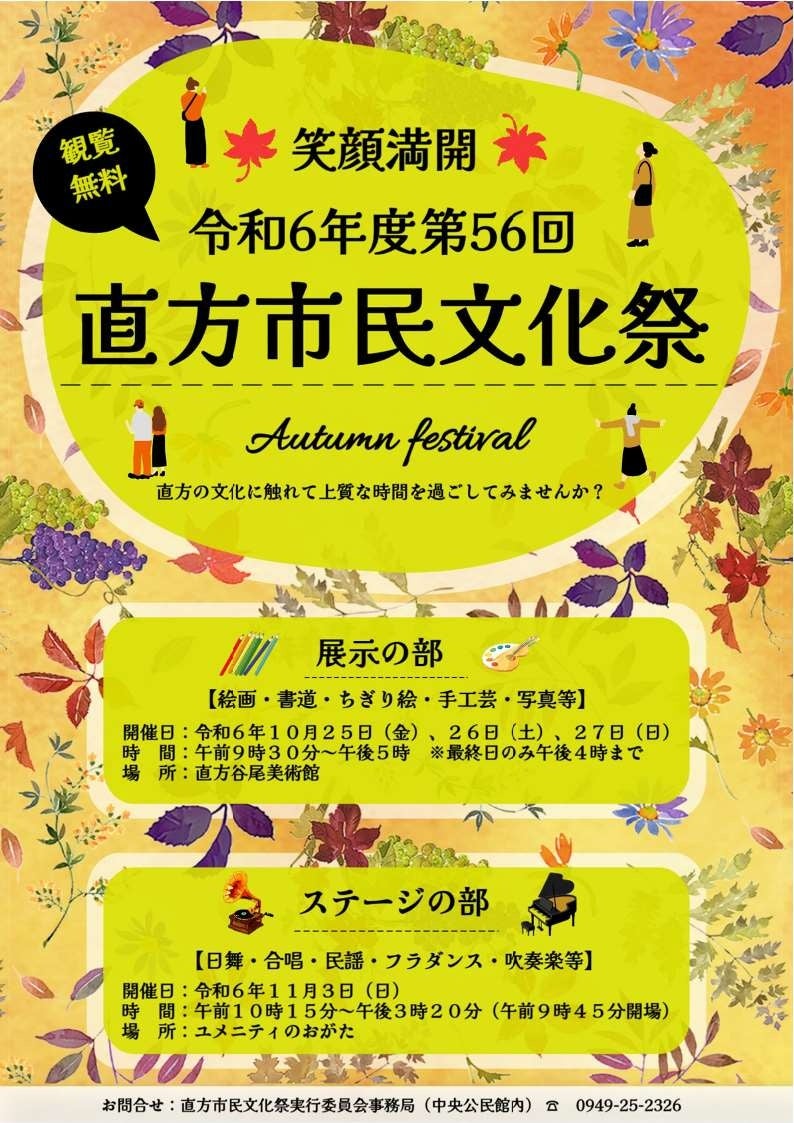直方市では、文化・芸術振興事業として、直方市民文化祭を開催します。市内で文化・芸術活動を行っ