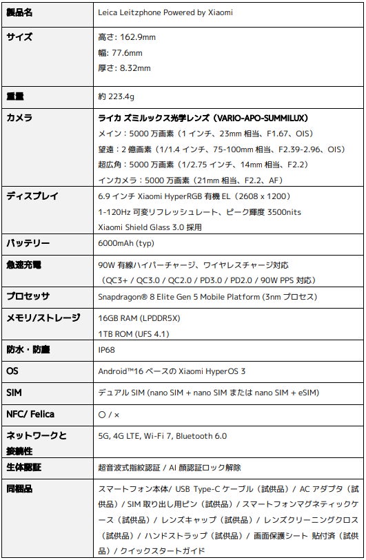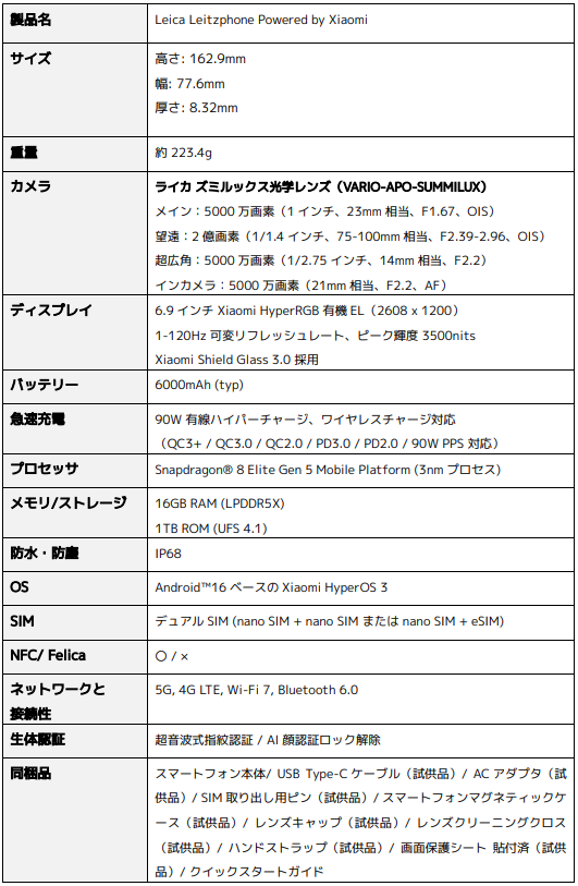 両製品は、長年に渡りシャオミとライカが「スマートフォンで表現できる理想的な写真」を共に追及し続けた協業の成果であり、「撮る喜びと高揚感」を極限まで追究した「現時点の最高傑作」と呼べるスマートフォンです。2億画素の大型センサー × 光学可変望遠システムによる卓越した望遠性能。メインカメラには、圧倒的なダイナミックレンジを実現するLOFIC技術搭載の1インチセンサーを備えています。それらの技術により生み出される写真は、まさに製品スローガンである「その写り、ライカ。」と思わせる作品に仕上がります。