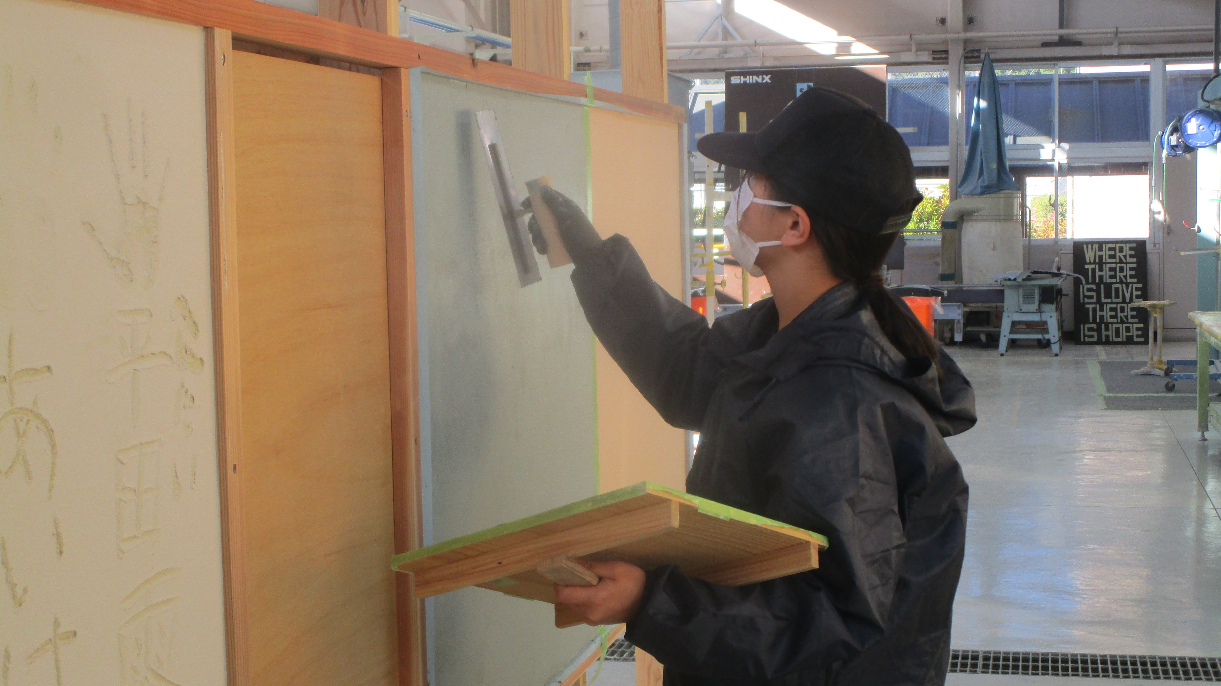 カラーコーディネート塗装科では、塗装分野(建築、自動車等)をはじめ、左官や色彩についての技能を習得したマルチな多能工の育成を目指します。