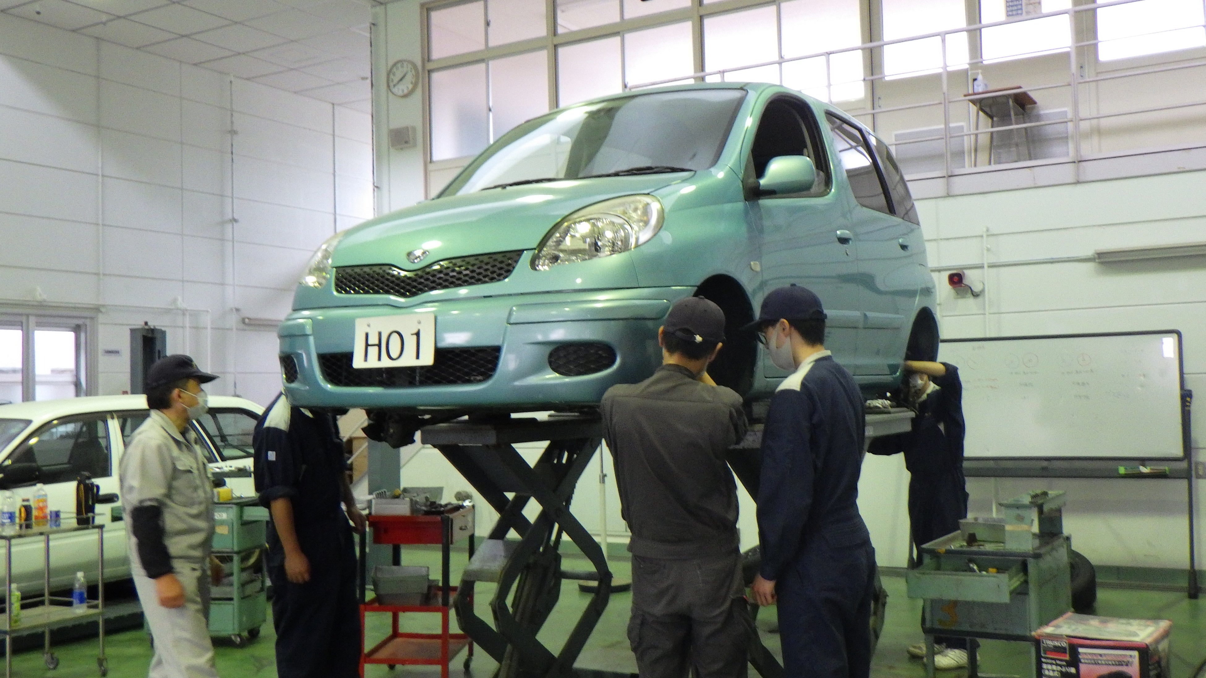 自動車整備科では、2級自動車整備士の資格を取得し、整備のプロとしての知識と技術を身に付け、自動車業界への就職を目指します。