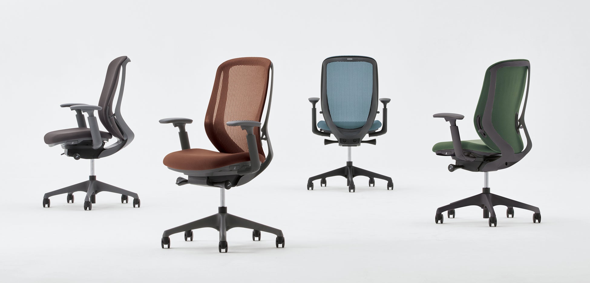 「Sylphy」は、2014年の発売以降、国内・海外累計で150万脚を販売しており、10年以上にわたり多くの皆さまにご使用いただいている人気製品です。昨今のオフィス空間のトレンドを鑑み、自然界の色彩から着想を得た3色を含めた5色を追加し、従来のカラーバリエーション11色から9色への見直しを図りました。また、ボディと脚のカラーにダークグレーを追加しました。オフィス空間の雰囲気や他の製品に合わせやすく、落ち着いた調和をもたらします。