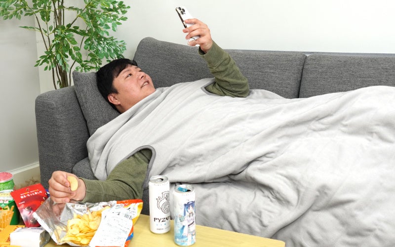 腕だし毛布で自由度バツグン スマホもゲームも電気毛布に包まれてだらだらできる