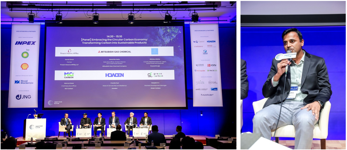 本サミットでは、「From Vision to Reality(構想から実現へ)」をテーマに、アジアにおけるCCUS(Carbon Capture, Utilization and Storage(※1))の商業化や、循環型カーボン経済(Circular Carbon Economy)の構築に向けたロードマップが議論されました。Green Carbonはカーボンクレジットのデベロッパー視点で登壇し、「炭素を負債ではなく、持続可能で収益性のある産業資産として捉える」という視点を提示し、東南アジア地域での大規模なネイチャーベース・カーボンクレジット創出の拡大や、JCM(二国間クレジット制度(※2))などの国際枠組みを活用した国際連携の強化を発信しました。