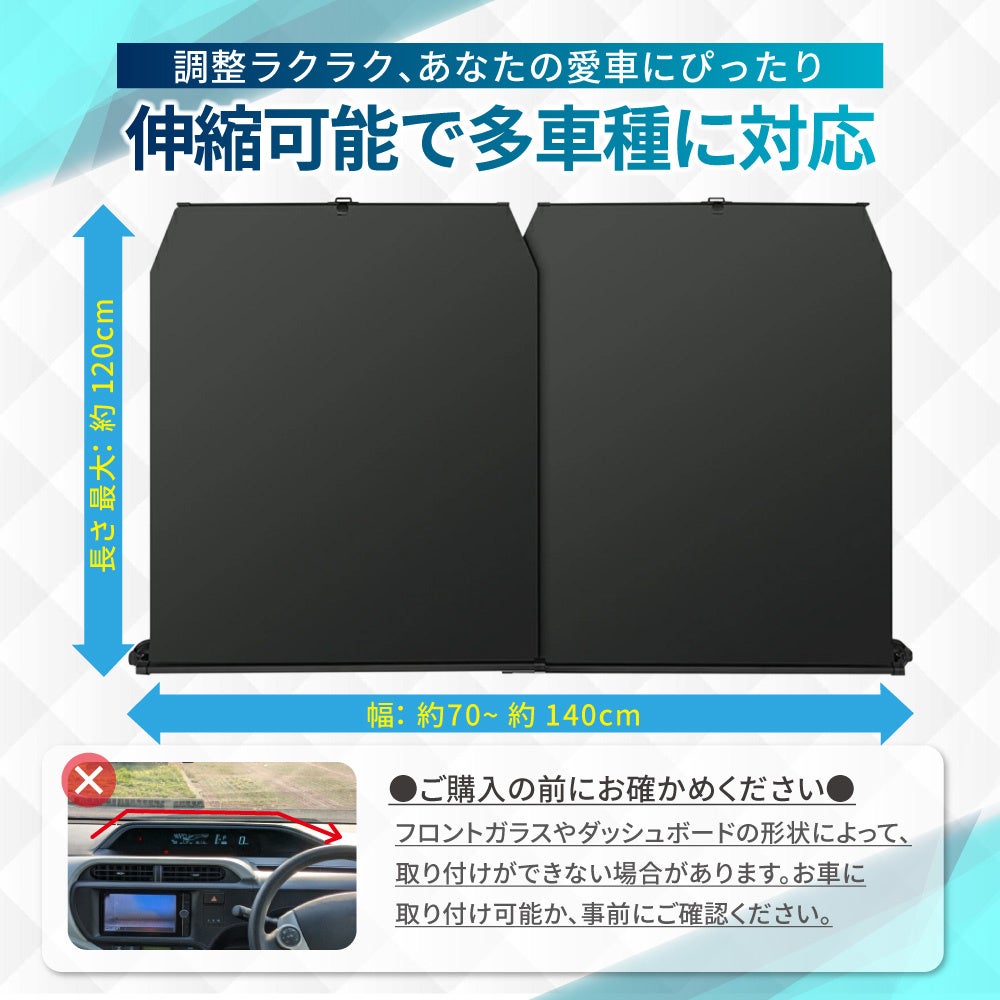 幅約70〜140cm、長さ最大約120cmまで調整可能で、軽自動車からワンボックスまで幅広く対応。