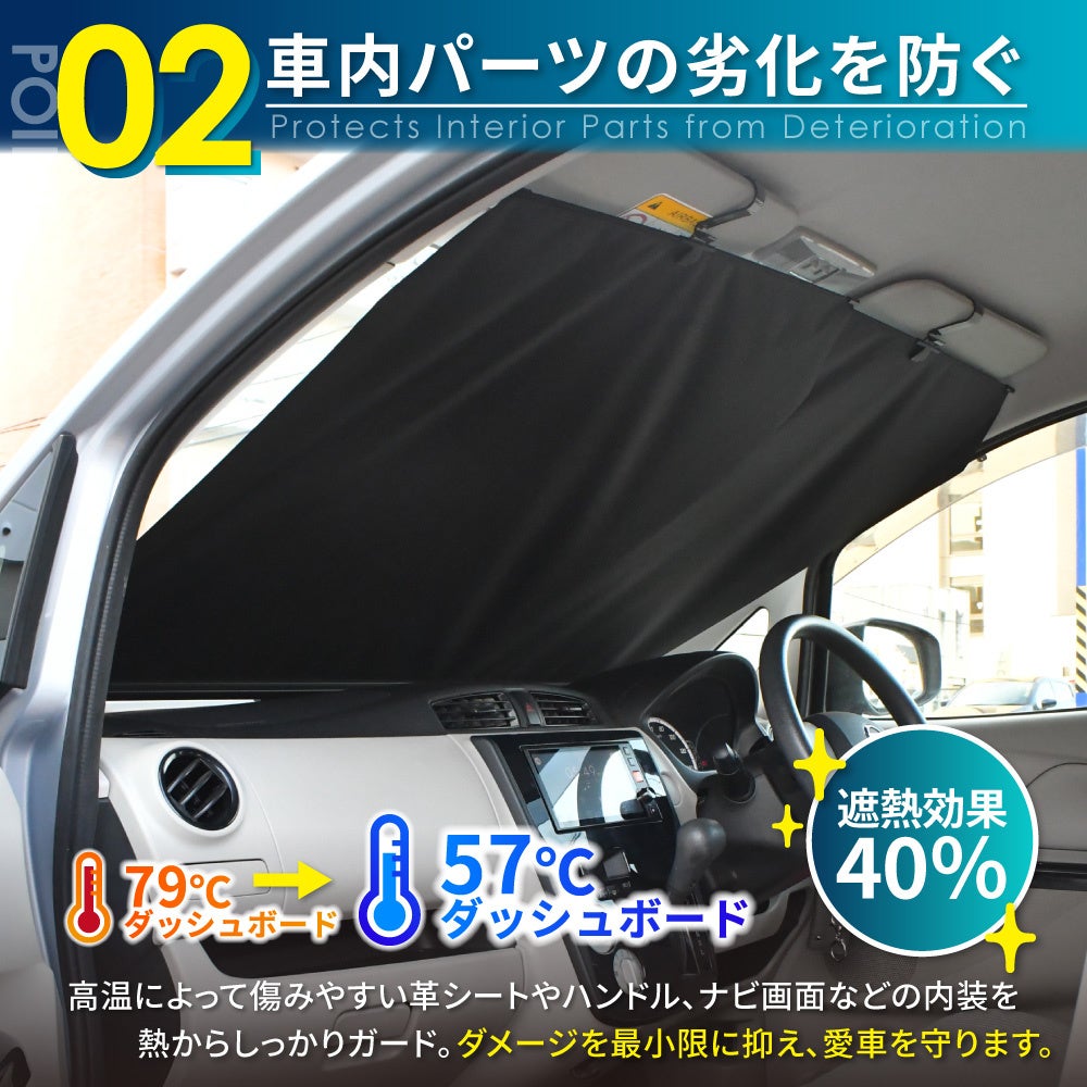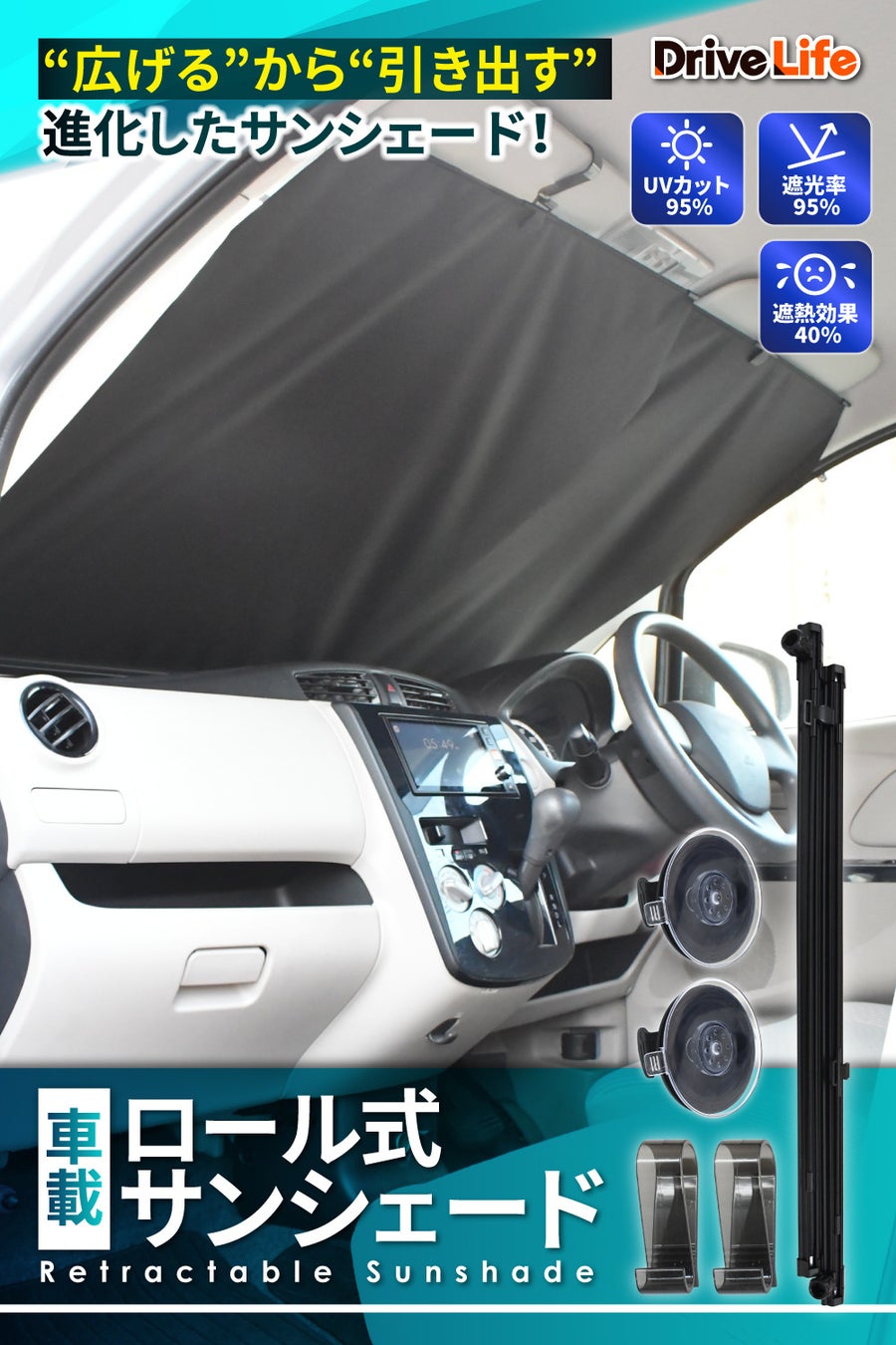 ロール式でサッと引き出し、しっかり日差しをカット!UVカット・遮熱・遮光のトリプル効果で、暑い車内も快適空間に。毎日のドライブに最適なサンシェードです。