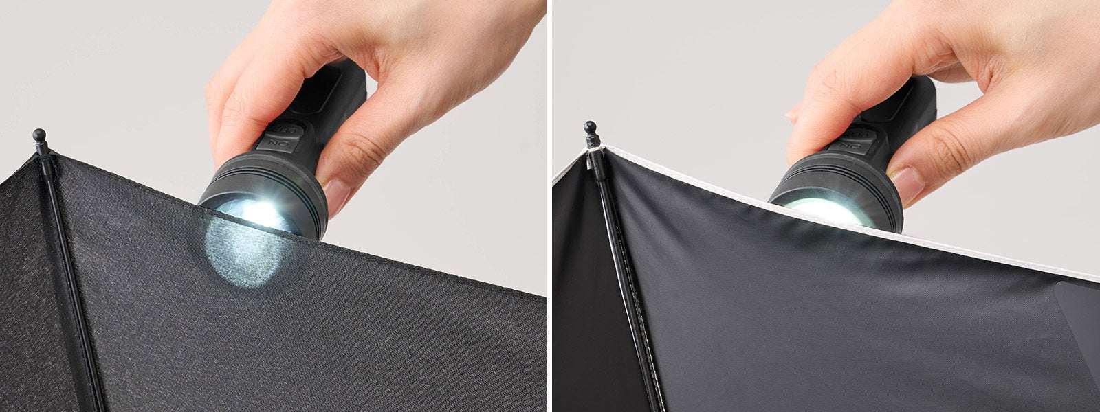 ・UVカット率100%、UPF50+、遮光率100%、遮熱効果あり