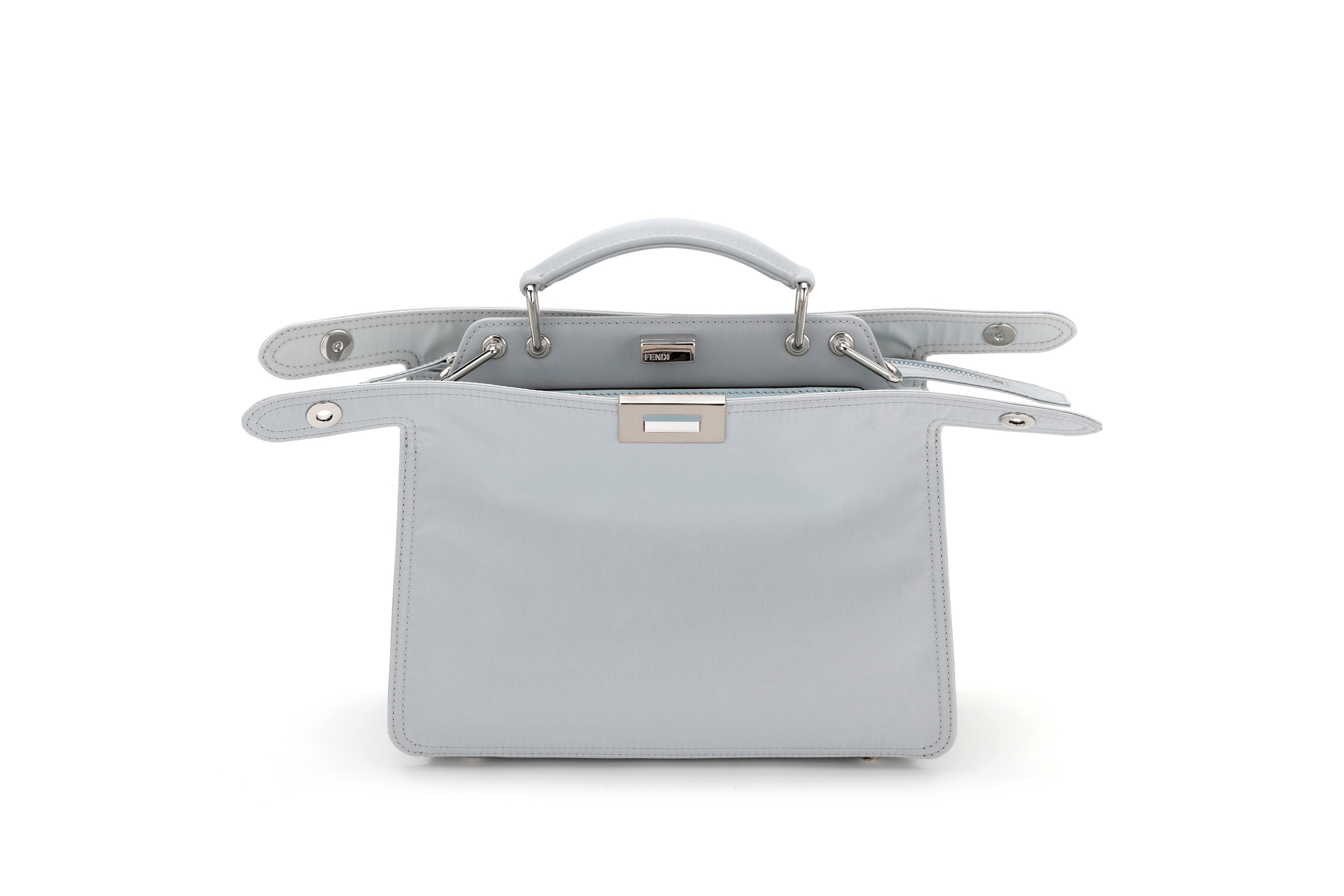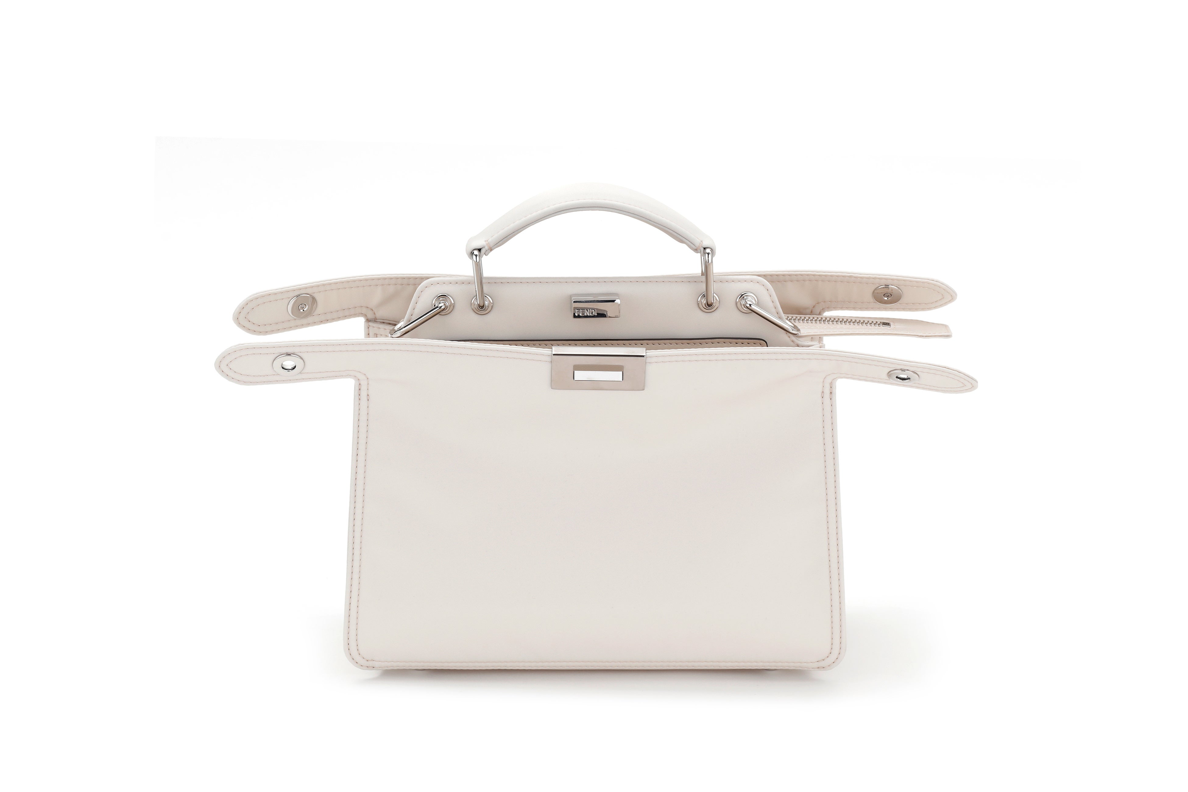 サステナブルな解決策への探求心と、フェンディが誇るクラフツマンシップから生み出される遊び心が融合した今季の「ピーカブー アイシーユー」は、春の花と移りゆく空の繊細なパステルカラーでラインナップされ、マットナイロンにアイコニックなセレリア(Selleria)のマクロステッチが施されています。