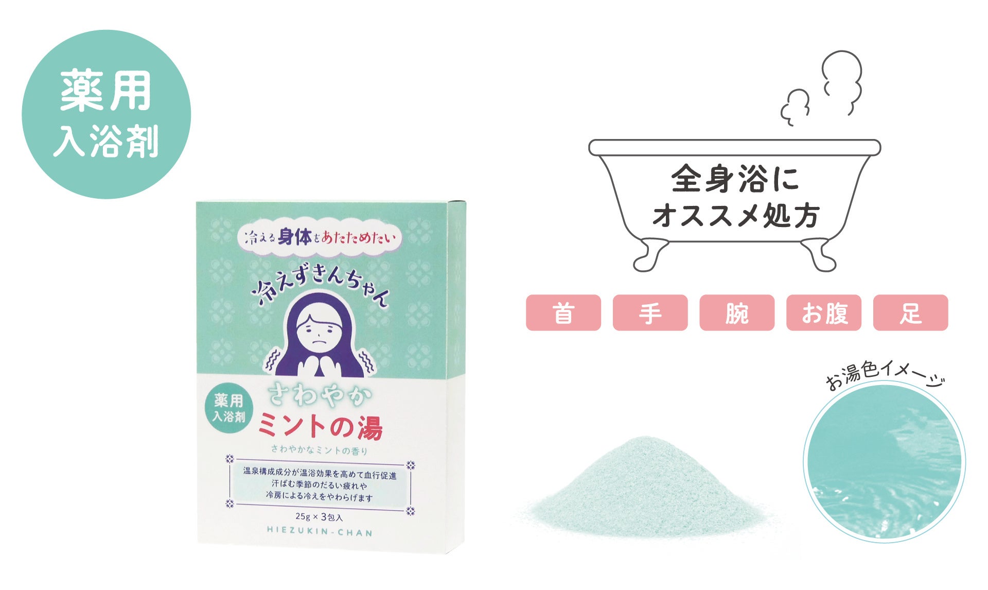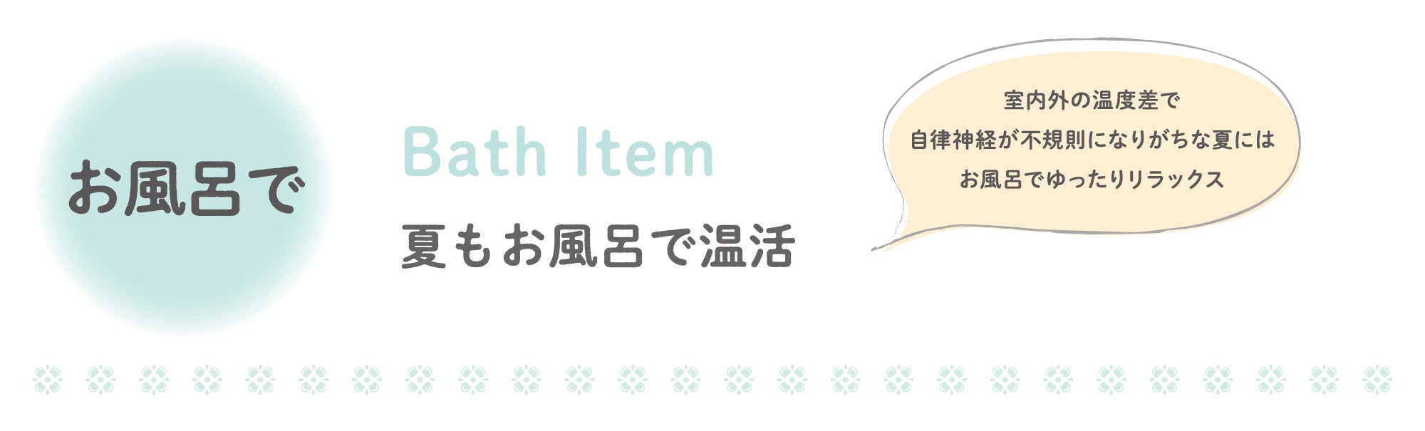 温泉構成成分*が温浴効果を高めて血行促進に。ミントの香りのお湯で、汗ばむ日もさわやかに入浴をお楽しみいただけます。