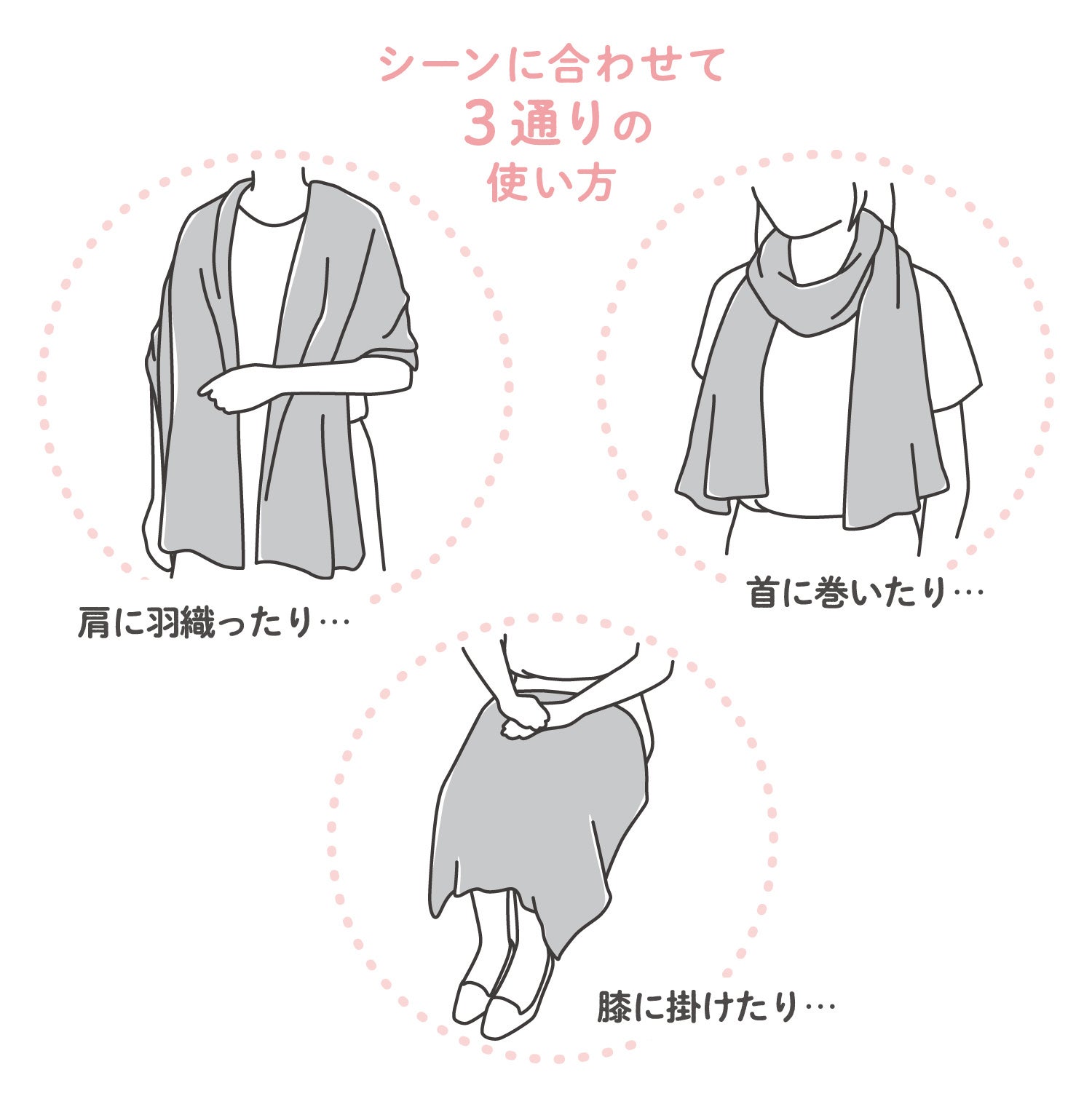 出掛け先やオフィスなど、どんな場所でも活躍するストールは、夏のマストアイテムです。UVカット85%以上で紫外線対策にも。