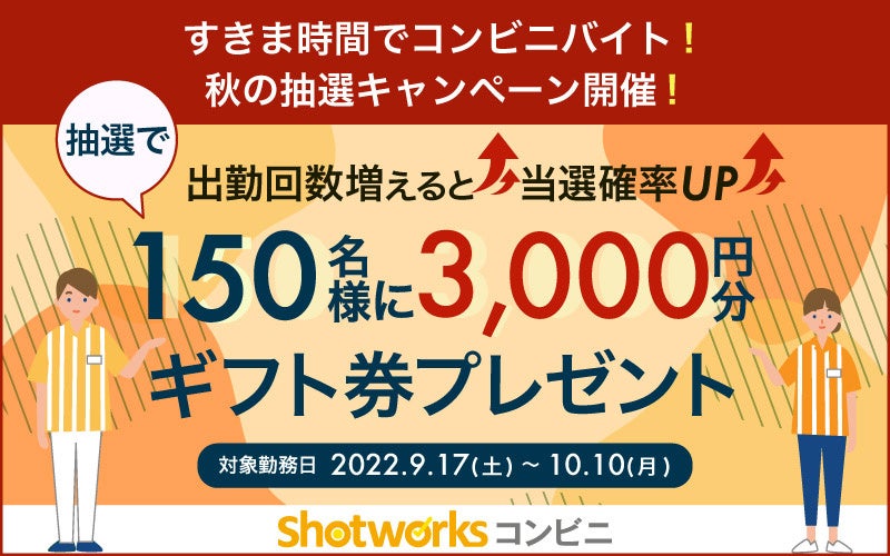 コンビニ専門求人サービス『ショットワークスコンビニ』が秋の抽選キャンペーンを開催
