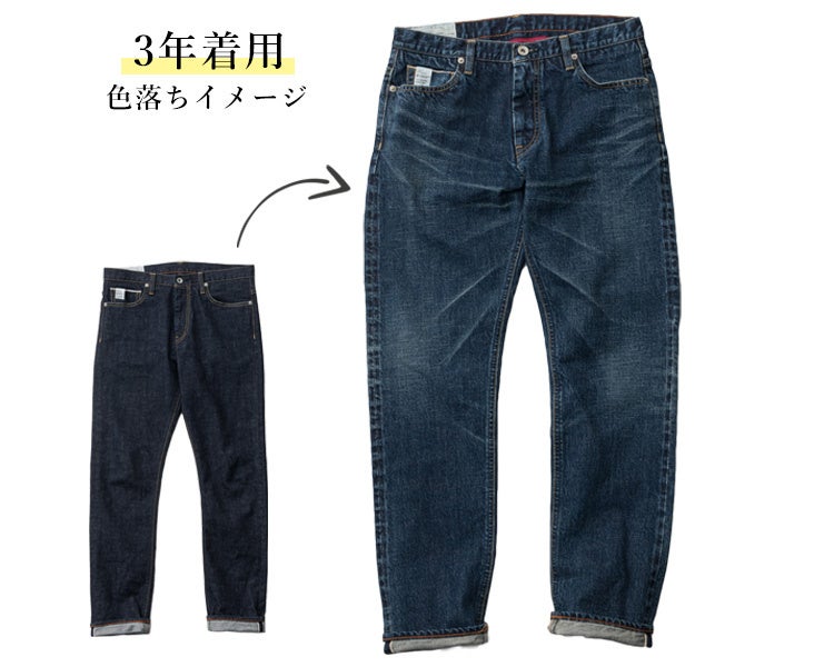 ヴィンテージデニムの風合いと美しい色落ちも楽しめ、本格デニムが好きな方も穿き心地を重視する方にも満足していただける一着が完成しました。