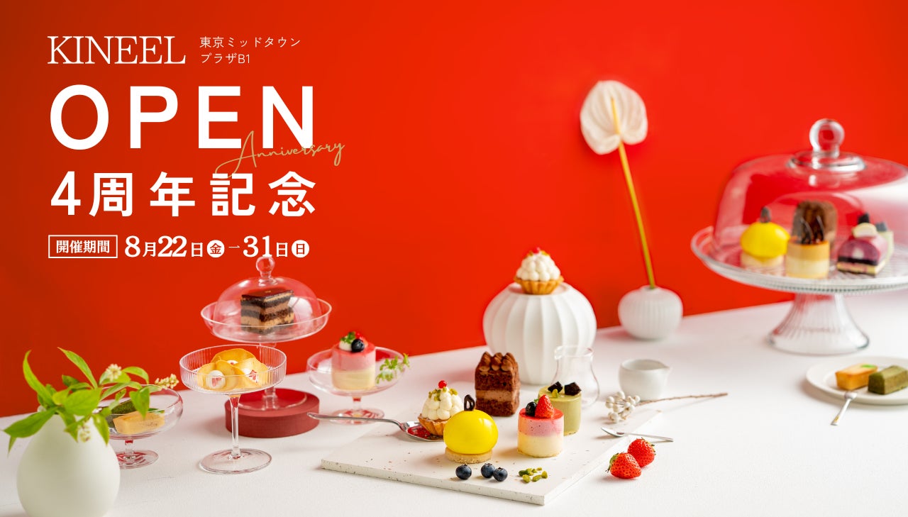 【Patisserie KINEEL京都】東京ミッドタウン店にてOPEN4周年記念イベントを8月22日から開催