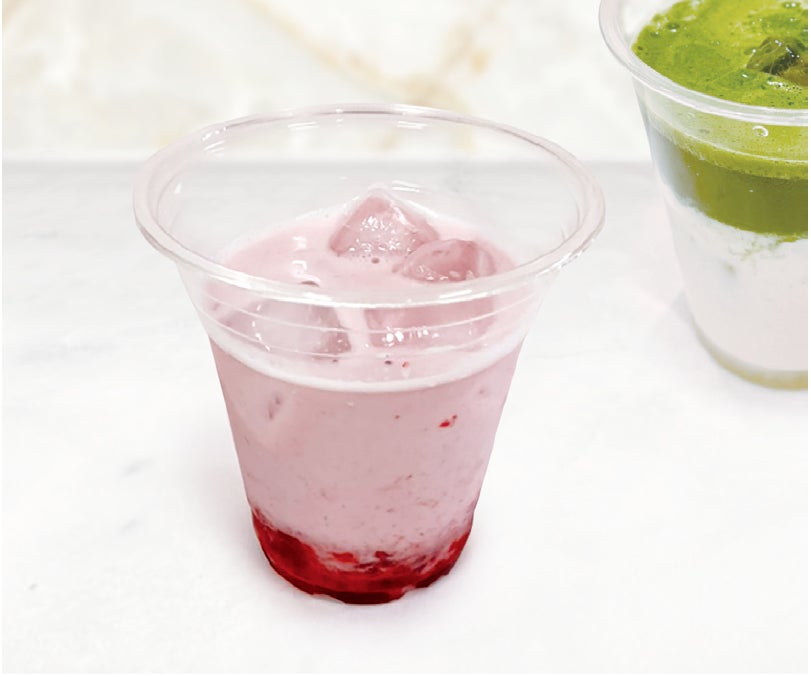 苺の果実が入ったミルクと溶け合う美味しい苺のラテです。是非、一度ご賞味ください。