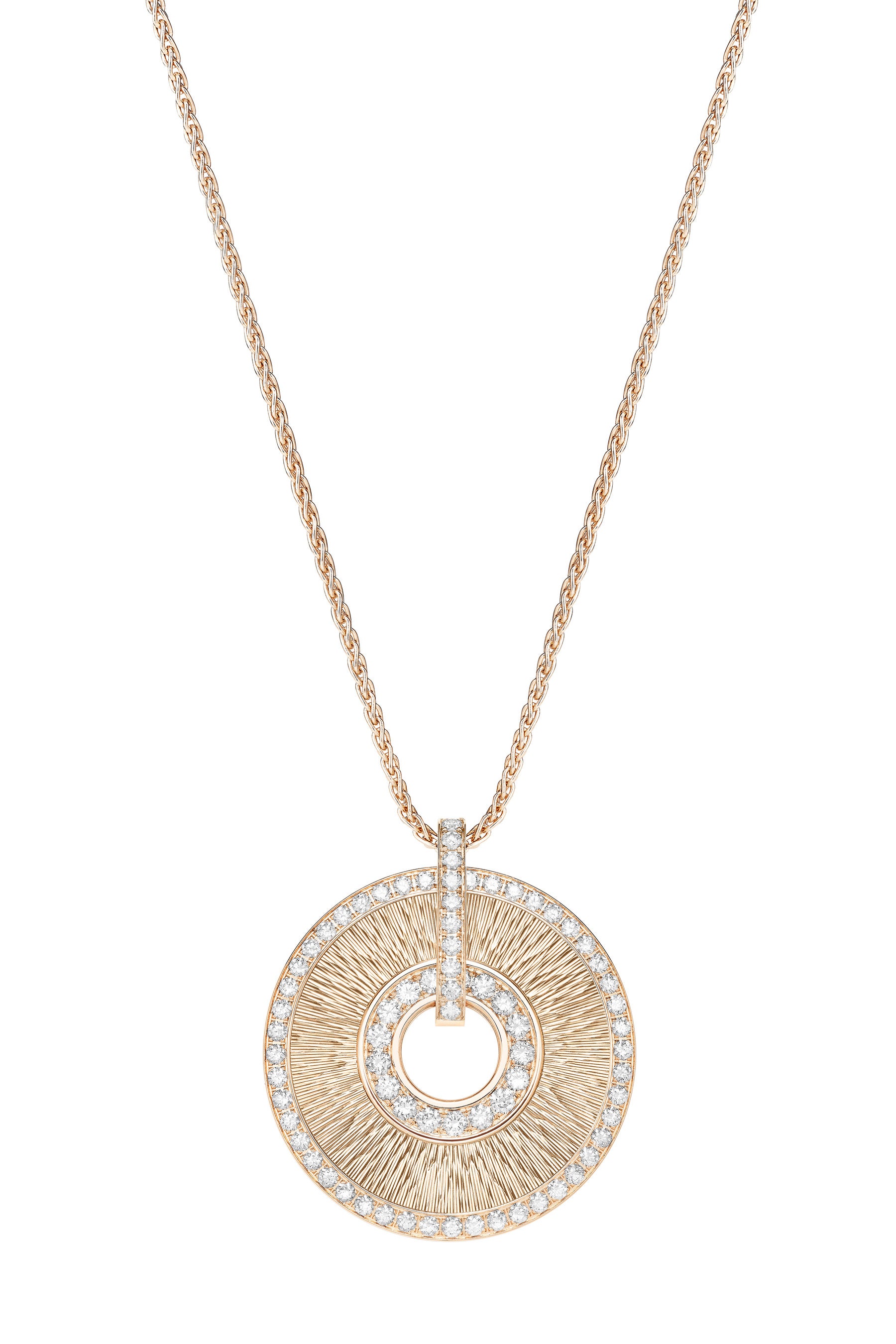 新作のハイライトとなるのは、「ピース・ド・レジスタンス」。優雅さと高揚感が調和したピアジェの「エクストラレガンザ」を体現する、大胆で多面的なタリスマンです。まばゆい太陽のエネルギーを纏ったように、8カラットのダイヤモンドを散りばめたメダリオンが、フォルムとチェーンが織りなす優美な調和の中で、身に着ける人を光と喜び、そして生命力で包み込みます。輝きと感動、そして揺るぎない個性を宿すこれらのカリスマ的なクリエイションは、進化し続けるピアジェの「HOUSE OF GOLD」の力強い新たな幕開けを告げています。