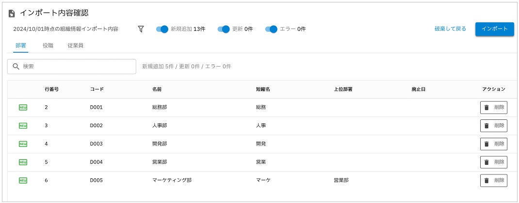 [インポートファイルアップロード後の内容確認]