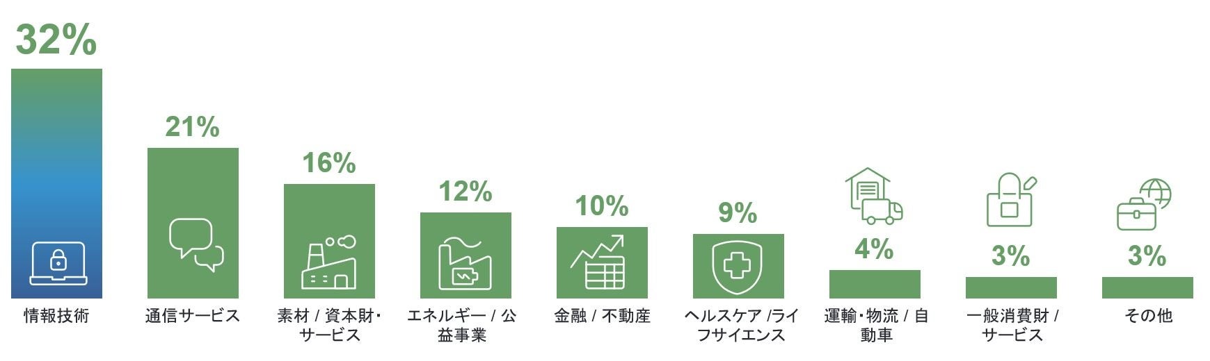 ※² 9業種:「ヘルスケア / ライフサイエンス」「情報技術」「金融 / 不動産」「運輸・物流 / 自動車」「素材 / 資本財・サービス」「エネルギー /公益事業」「一般消費財 / サービス」「通信サービス」「その他(政府・公共機関、非営利団体・NGO・慈善団体・宗教団体、 その他産業、その他運輸・物流・自動車関連産業、教育機関、農業・漁業」