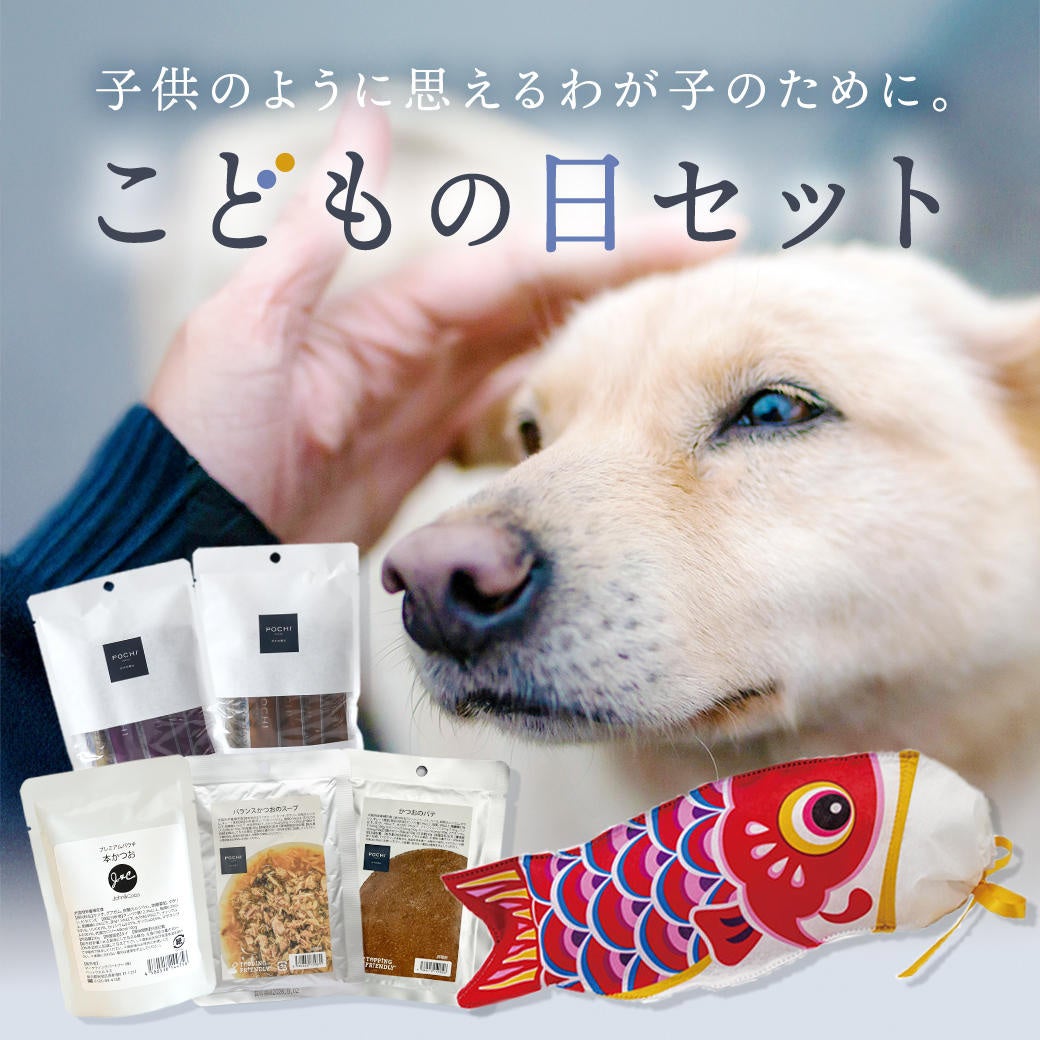 プレミアムドッグフードメーカー「POCHI」(運営:マーケティングパートナー株式会社、本社所在地:東京都新宿区、代表取締役社長:権田真司、Tel:03-6772-8194、https://www.pochi.co.jp/)は、端午の節句「こどもの日」のお祝いにぴったりなお得な特別セット2種(「かつおセット」、「ガムセット(こいのぼり袋つき)」)を4月8日(火)より発売します。犬たちの健やかな成長を願いながらお楽しみください。(数量限定のため、なくなり次第販売終了となります。)