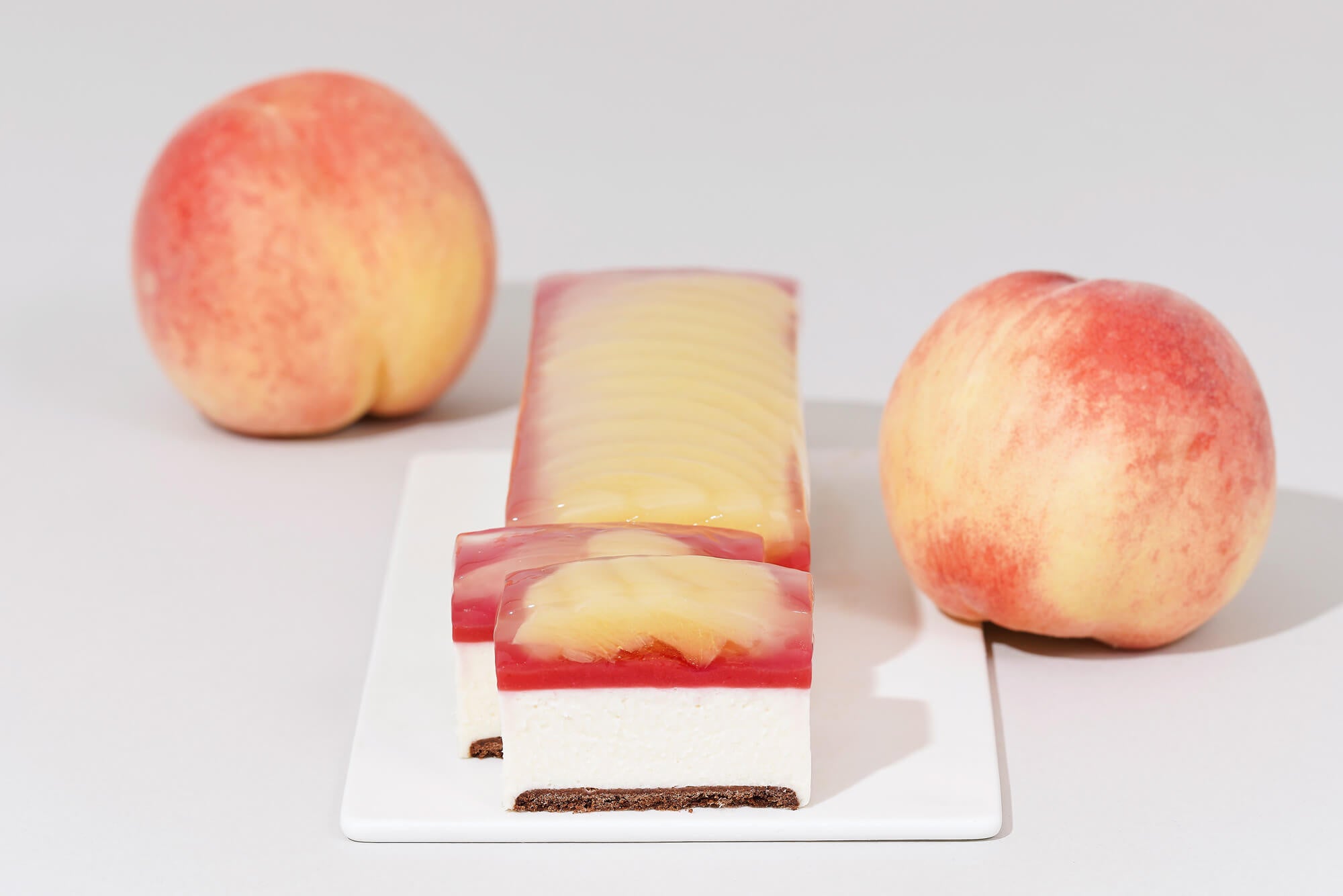 Minimalより、旬の白桃を使ったピーチメルバのような華やかな夏スイーツ、夏季限定「白桃のカカオレアチーズケーキ」7月2日発売