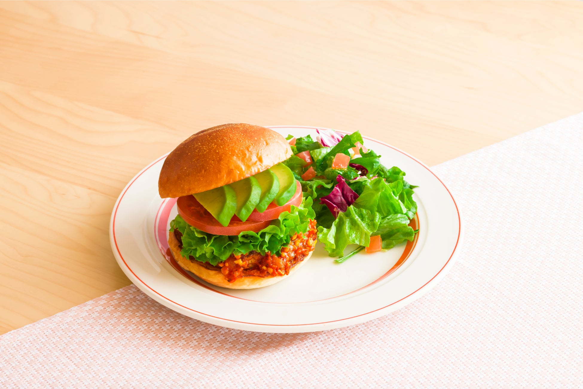 またヴィーガン・ベジタリアンの方にもお楽しみいただける『ヴィーガンアボカドバーガー』も販売します。プラントベースのパティに玉ねぎの甘みがひろがる特製のトマトソースをかけ、小麦風味豊かなヴィーガン対応のバンズで挟みました。ヴィーガン以外の方でも美味しいと感じていただけるジューシーな食べ応えです。