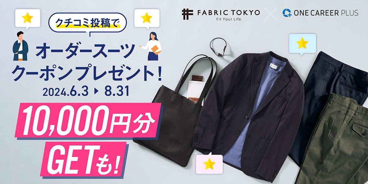 ONE CAREER PLUSで転職体験談などのクチコミを登録することで、FABRIC TOKYOで使えるクーポンをプレゼントいたします。