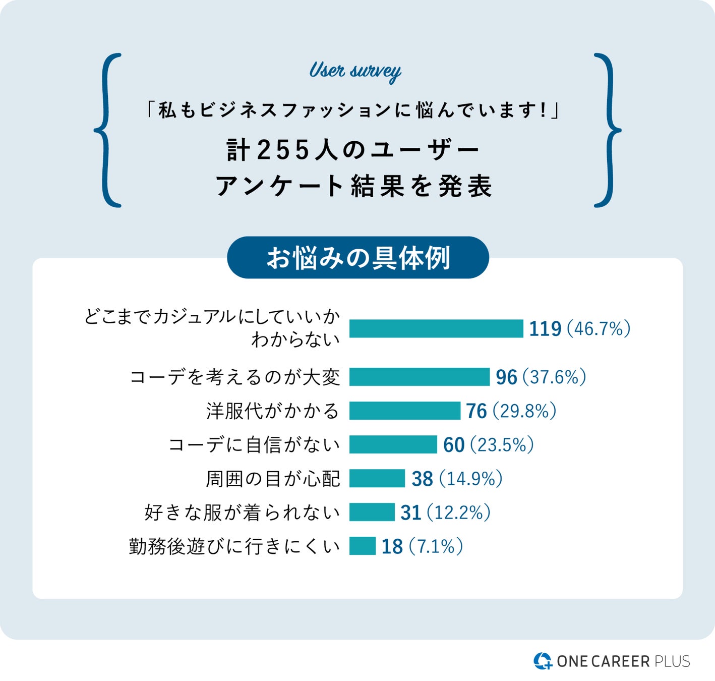 次のキャリアに向かうビジネスパーソンの多くが実際に直面する、ビジネスウェアの課題を解決するべく、求職者向け中途採用メディア「ONE CAREER PLUS」での、ビジネスウェアがわかるコンテンツ「ビジネスカジュアルマップ」が実現しました。