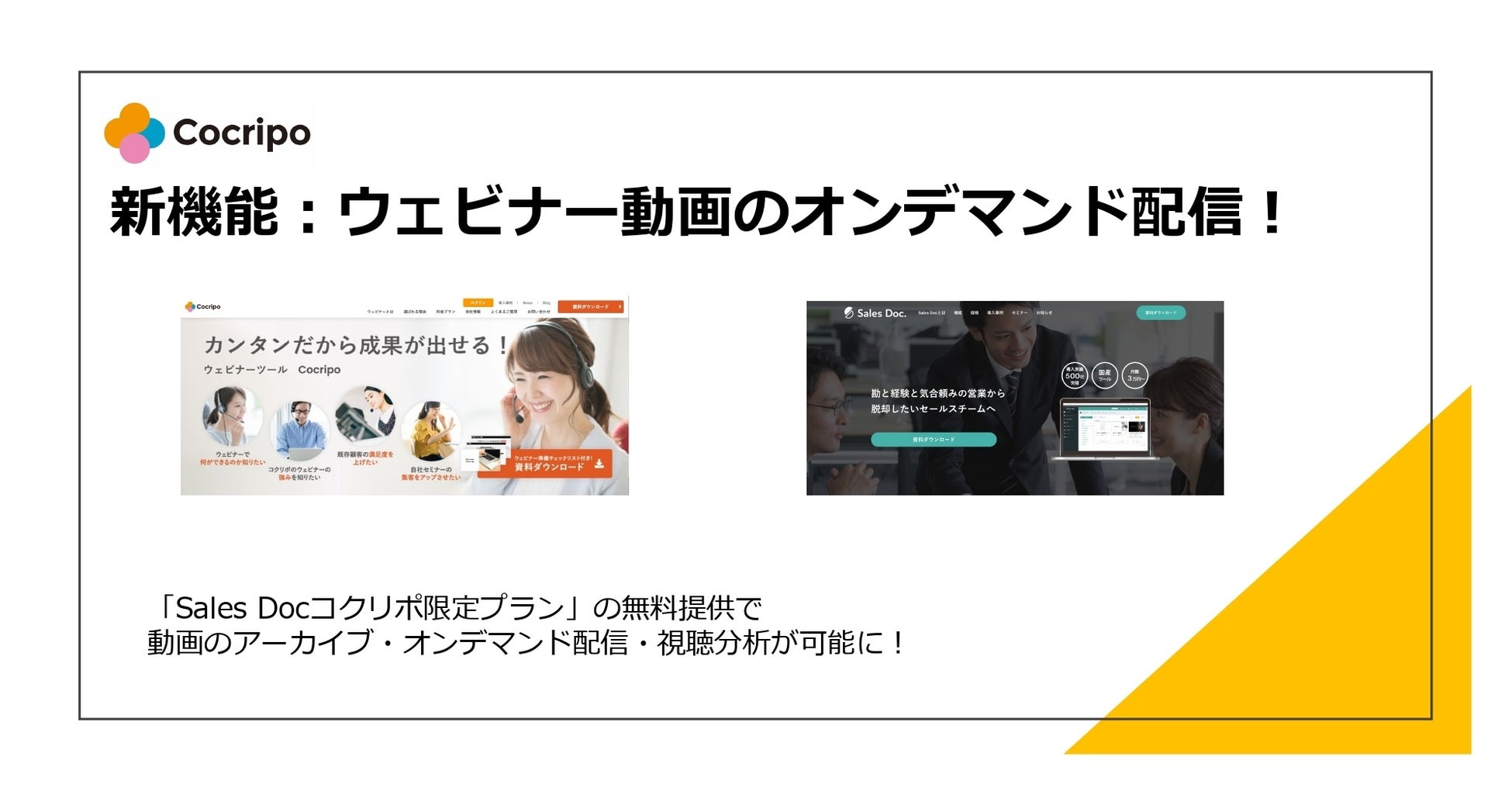 ウェビナーツール『コクリポ』 Sales Docコクリポ限定プラン「ウェビナー動画オンデマンド配信」の新機能をリリース!