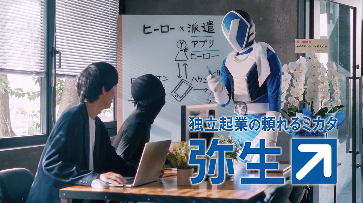 起業に挑む戦隊ヒーローを描き、弥生の起業支援サービスを訴求