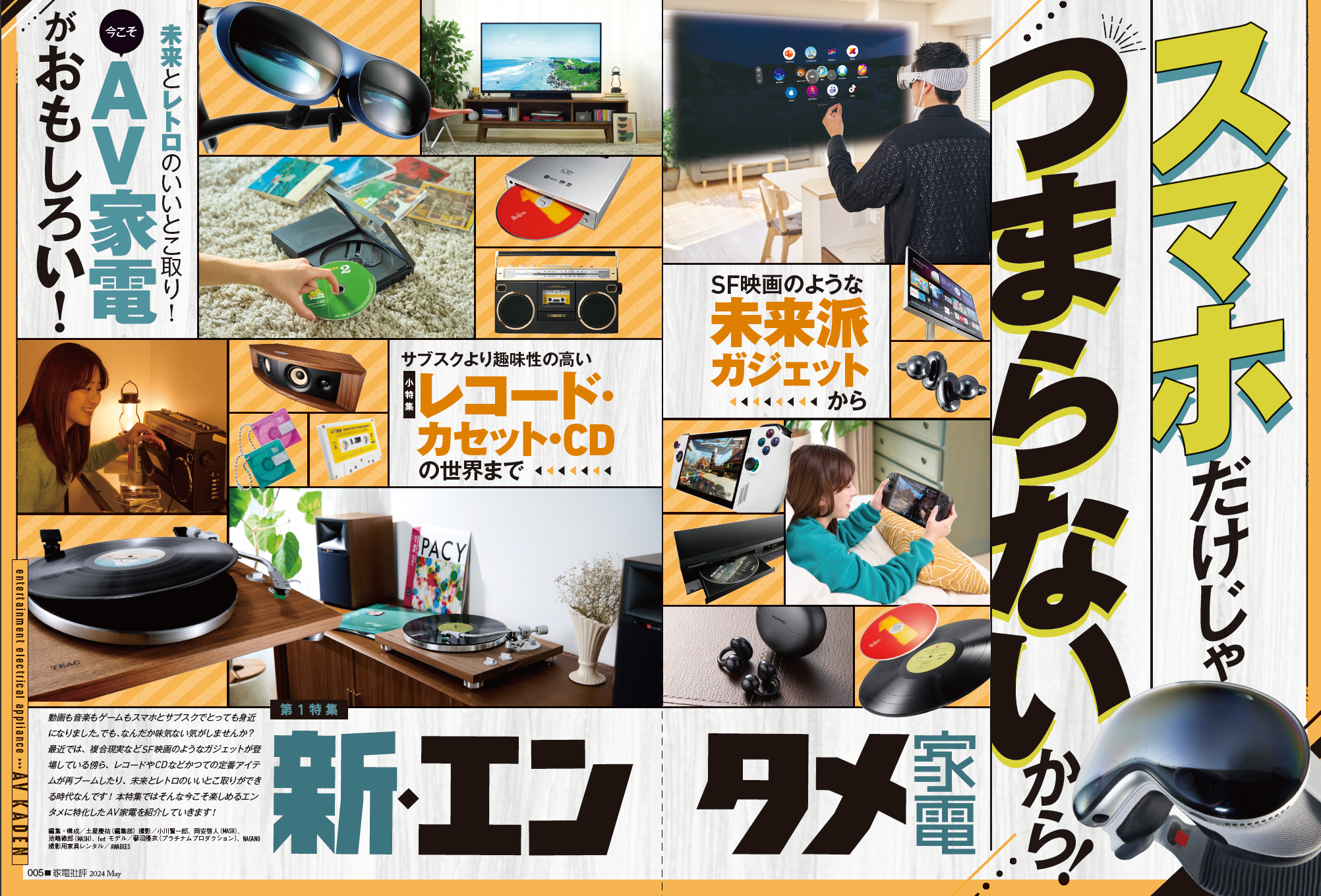 動画も音楽もゲームもスマホとサブスクでとっても身近になりました。でも、なんだか味気ない気がしませんか? 最近では、複合現実などSF映画のようなガジェットが登場している一方、レコードやCDなどかつての定番アイテムが再ブームしたり、未来とレトロのいいとこ取りができる時代なんです! 本特集 ではそんな今こそ楽しめるエンタメに特化したAV家電を紹介していきます!