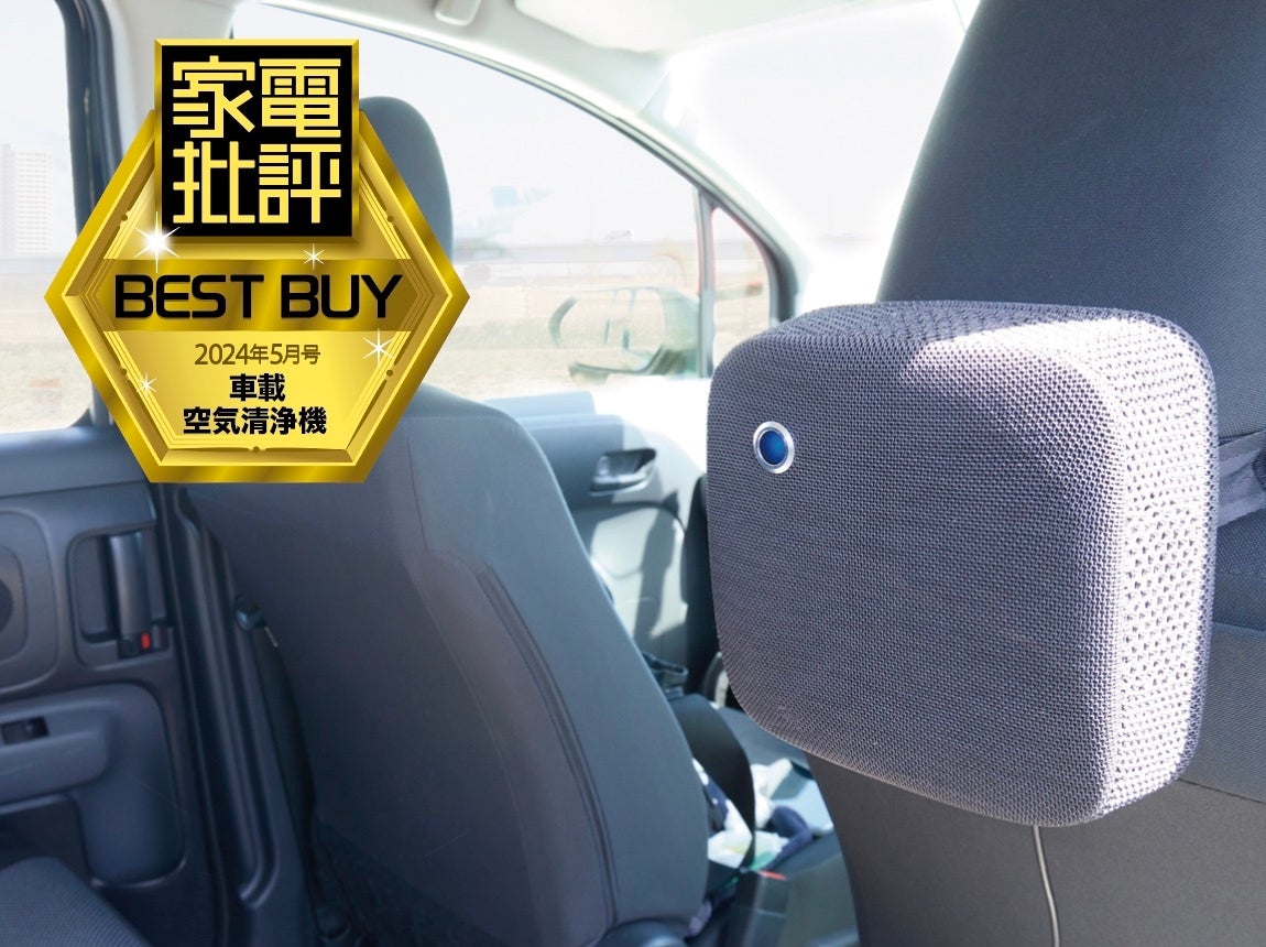 車載製品のなかでは大型な分、フィルターも大きく、空気をしっかり循環してくれます。今回の検証ではタバコ臭が染み込んだ布を密閉空間にセット。空間内に充満したニオイを約10分と短時間でほとんど除去できたうえ、染み込んでいたニオイまで軽減できていました。ヘッドレスト部分にベルトで装着できるので、車内のスペースをほとんど圧迫しません。また、専用のスマホアプリと連携すると、フィルターの交換時期などをお知らせしてくれる機能性の高さも魅力です。