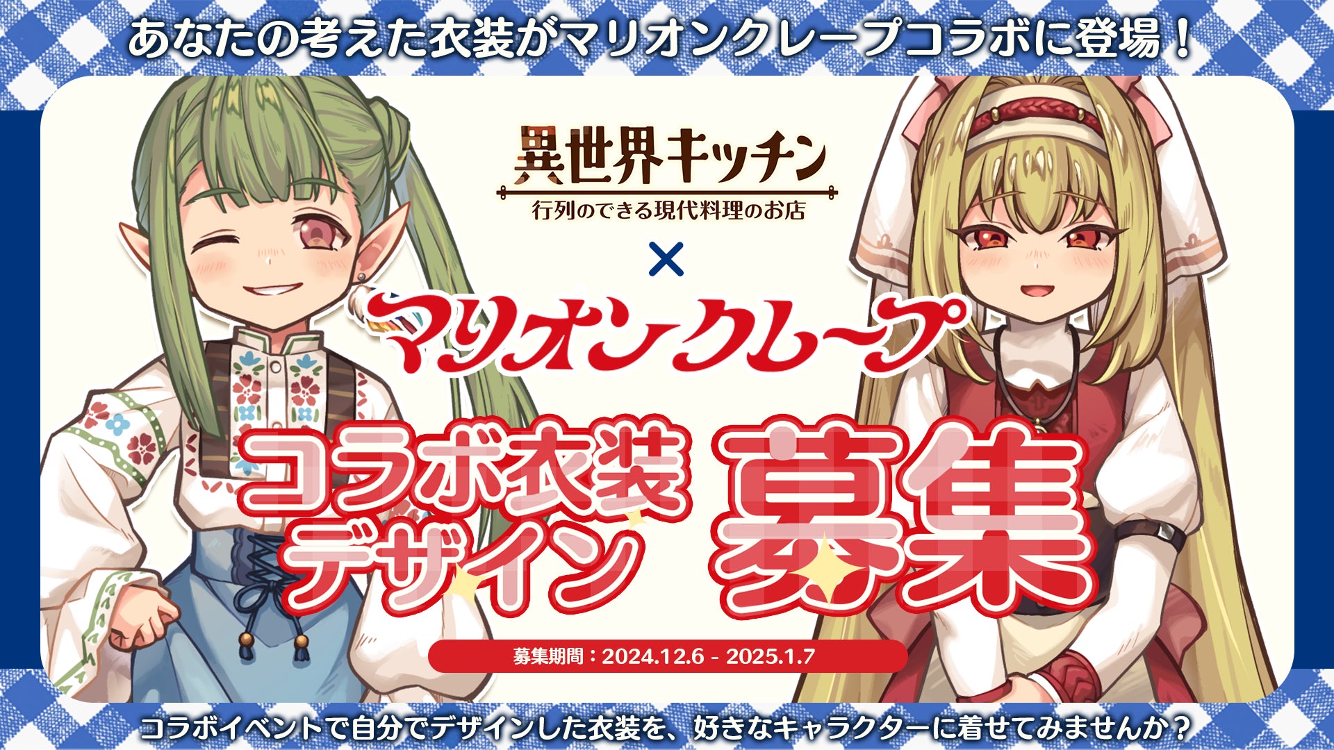 『異世界キッチン 行列のできる現代料理のお店』と『マリオンクレープ』のコラボイベントが決定!コラボ開催記念の「コラボ衣装デザイン募集」を開催!