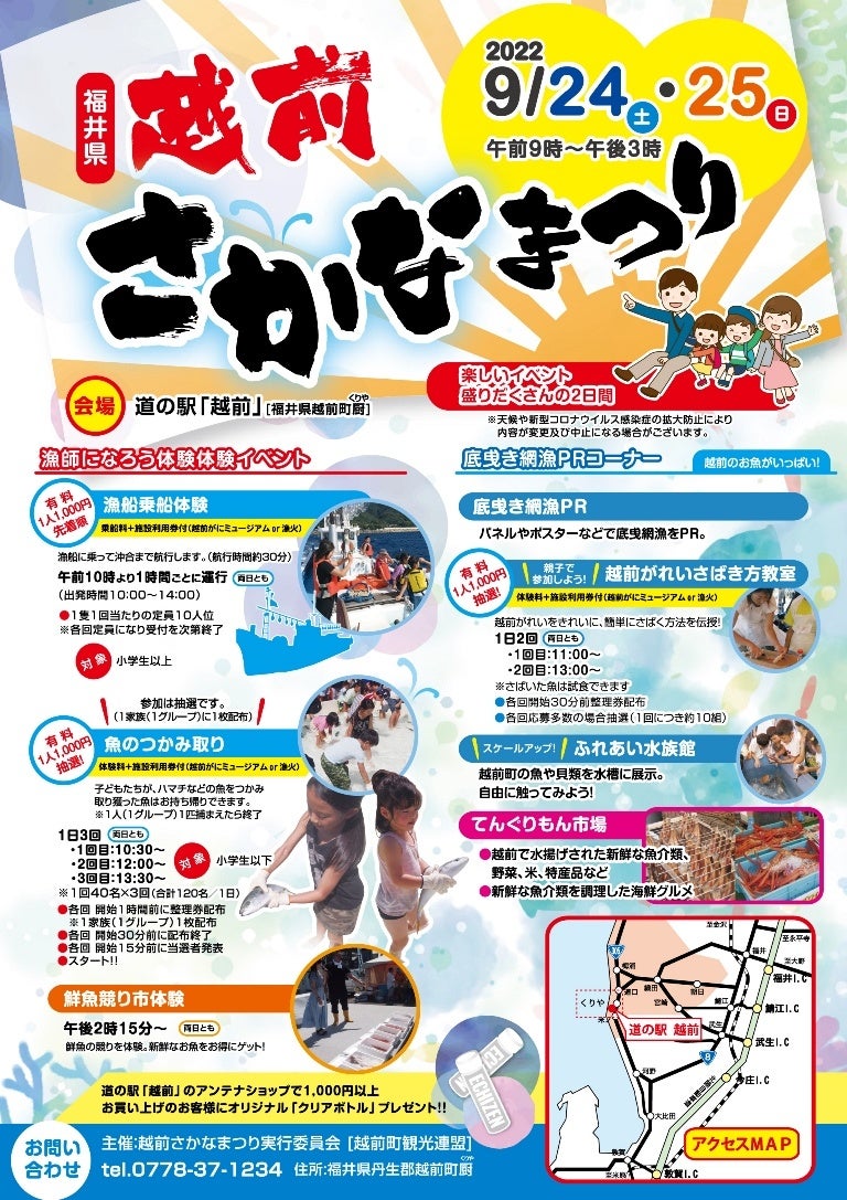 9月24日(土)・25日(日)に、福井県越前町の道の駅越前にて「越前さかなまつり」を3年ぶりに開催します。