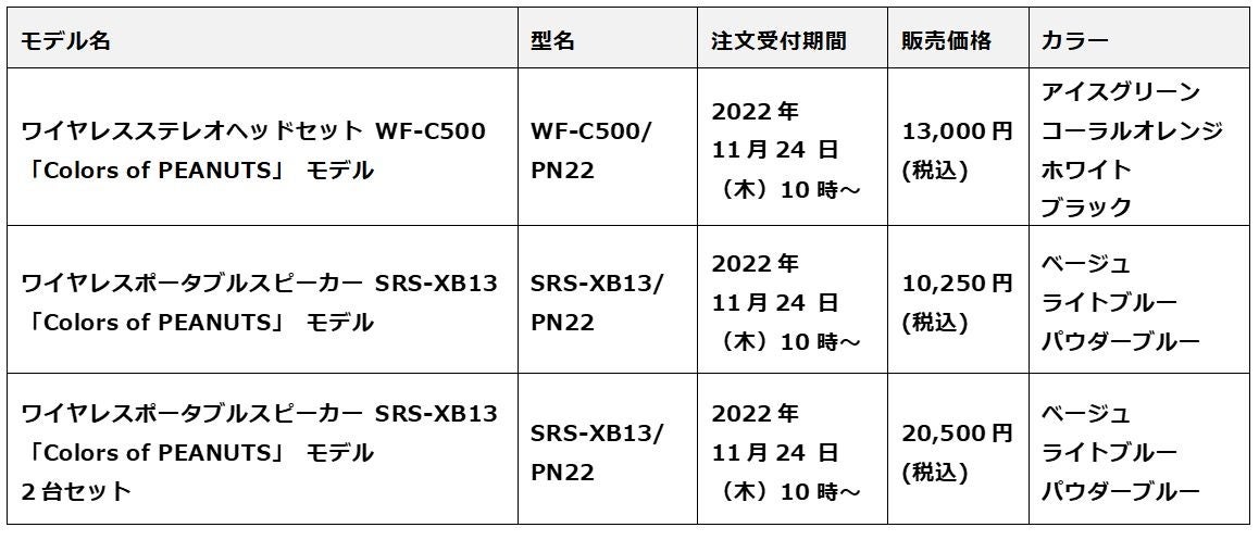 ※「PEANUTS Collection」モデルについて https://www.sony.jp/store/press/220808.html