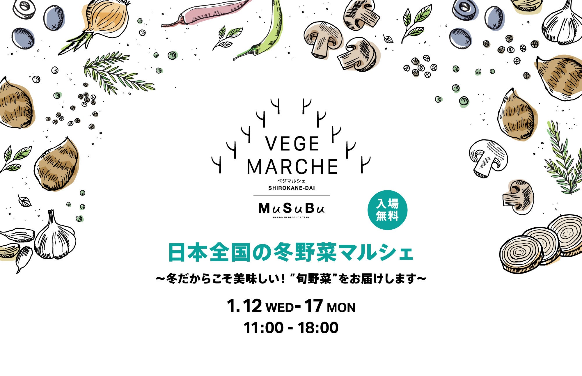 〈旬の味わいを堪能〉美味しい旬の野菜が集結!『日本全国の冬野菜マルシェ』を東京白金台「MuSuBu」にて開催