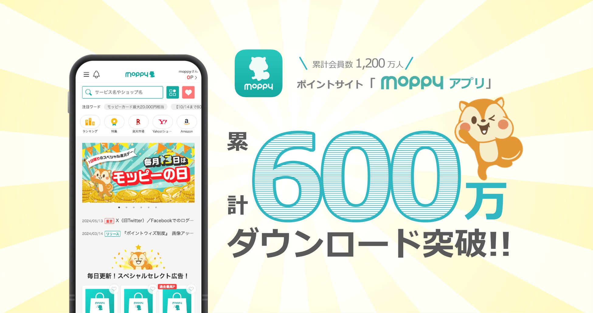 ポイントサイト「モッピー」のアプリダウンロード数が600万を突破!