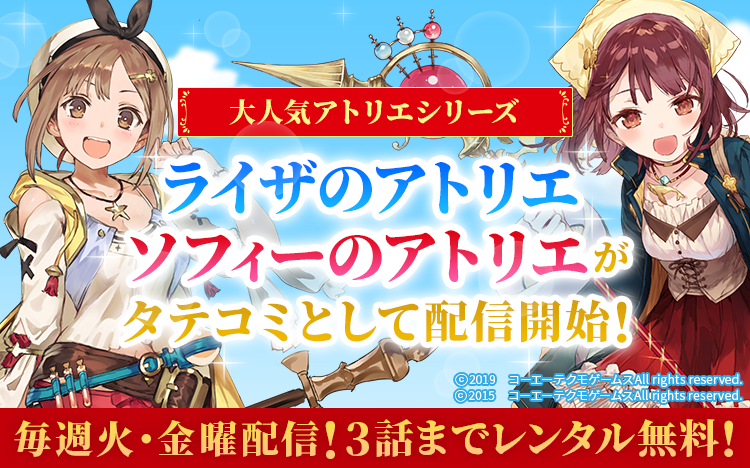 今回、第1弾として、あの大人気「アトリエ」シリーズより、『ライザのアトリエ』、『ソフィーのアトリエ』の2作品を「Gamtoon」として配信いたします!