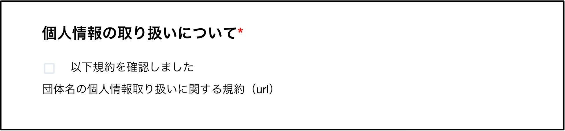 寄付者の個人情報の取り扱いに関する同意を得るための項目も追加できます。寄付者のデータ保護を徹底し、信頼感の醸成に貢献します。