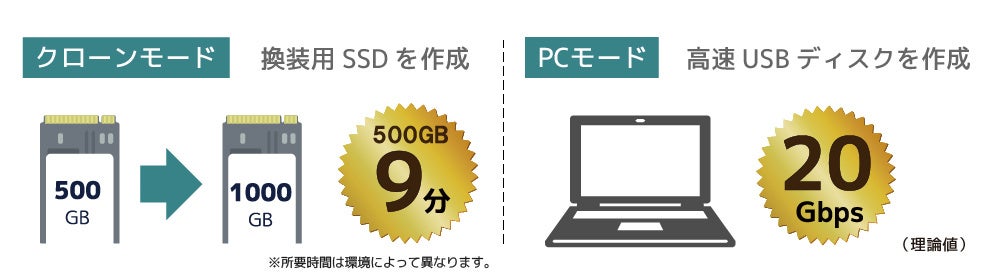 ※所要時間は、ご使用環境やSSDによって大きく異なります。