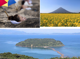 世界的にも珍しい「天然砂むし温泉」で知られる指宿市。砂の重みと温かさが心地よく、心身ともに癒されます。