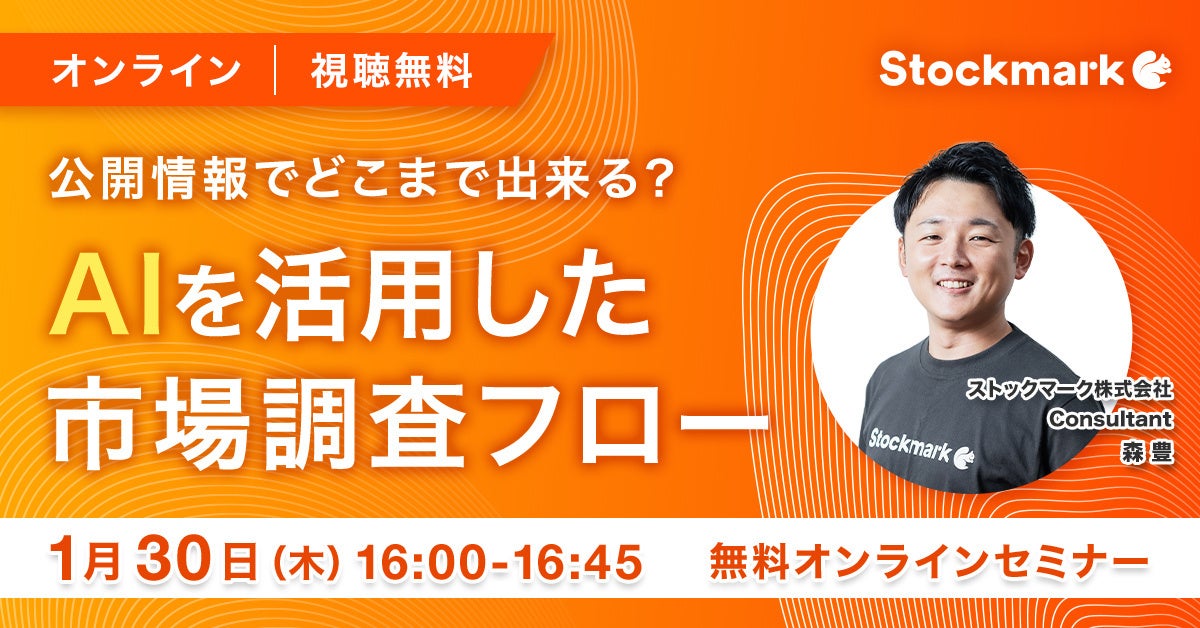 【1月30日(木) 無料セミナー】『公開情報でどこまで出来る? AIを活用した市場調査フロー』を開催(ストックマーク主催)