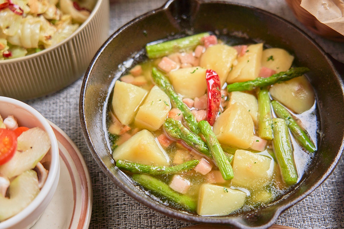3月20日よりグランピング体験をさらに特別にする「春の豪華グランピングメニュー」が登場。季節の食材「春キャベツ」取り入れた「春キャベツのアンチョビマリネ」「春キャベツのミネストローネ」に加えて「季節の野菜やフルーツ」使った料理が登場。その他にも春メニューとしてリニューアルされた「ホタルイカのパエリア」などの「STAUB鍋料理」も堪能できます。