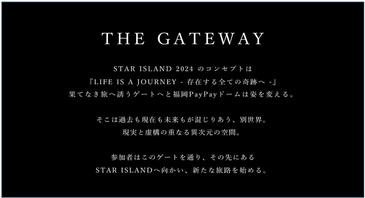 「STAR ISLAND」の入口にあたる福岡PayPayドームでは、「THE GATEWAY」をコンセプトとした、レーザーにアートを掛け合わせた没入型エンターテインメントを体験いただけます。