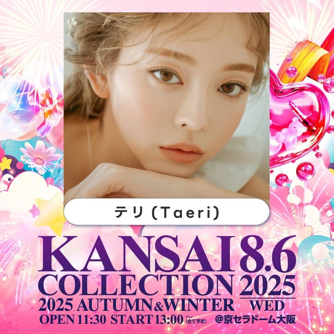 この度、コスメプロデュースなどモデルの枠を超え多方面で活躍中のカリスマインフルエンサーカンテリ(taeri)がGLOBAL GUESTとして京セラドームにて8月6日(水)に開催される『KANSAI COLLECTION 2025 AUTUMN/WINTER』に初出演することが決定いたしました。