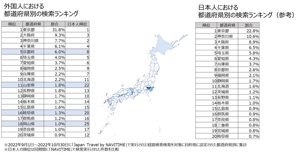 ナビタイムジャパン、訪日外国人旅行者が検索している観光地を分析