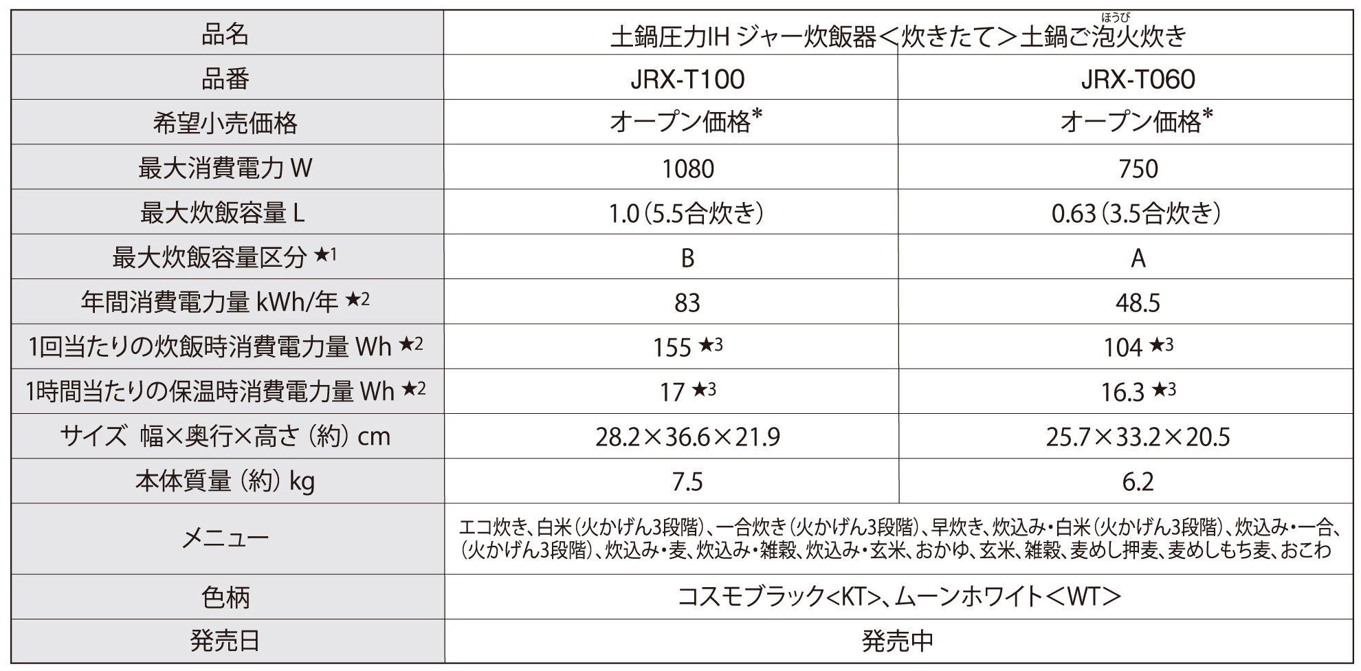 「土鍋ご泡火炊き JRX-T型」製品ページ