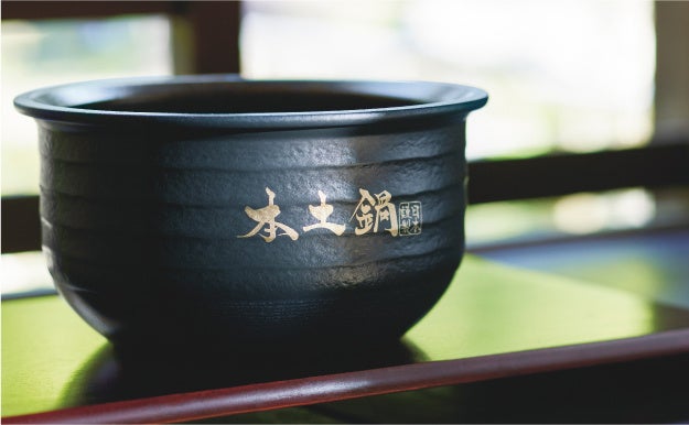 本土鍋の内なべは、土鍋で有名な三重県四日市市の伝統工芸品「四日市萬古焼」を使用。専用の厳選された土を使い、約1,250℃の高温で焼き上げ、温度の違う計「三度焼き」を経て完成。本土鍋の強度は、一般の土鍋と比べて、約2倍※以上。