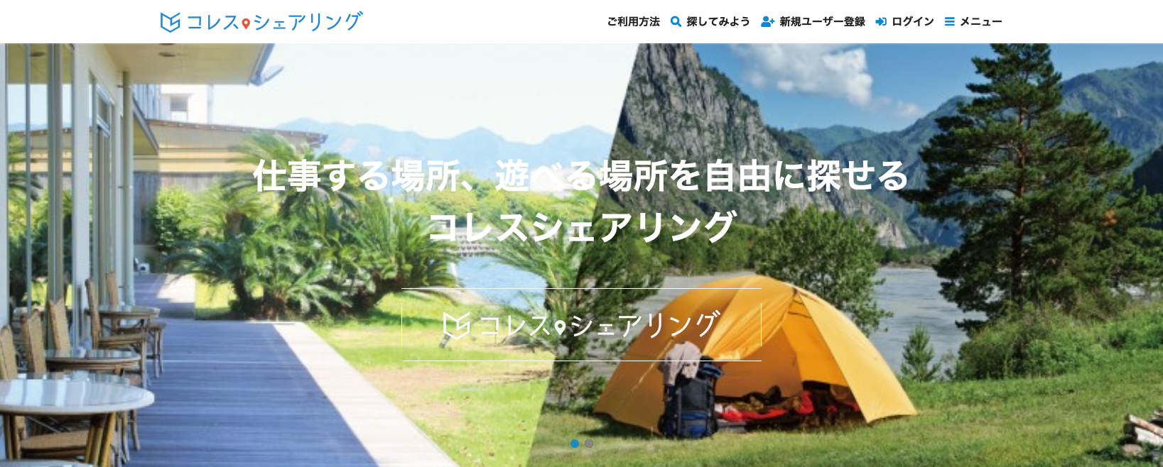 「コレスシェアリング」は、仕事する場所や遊べる場所を自由に探せるシェアリングエコノミーサイトです。
