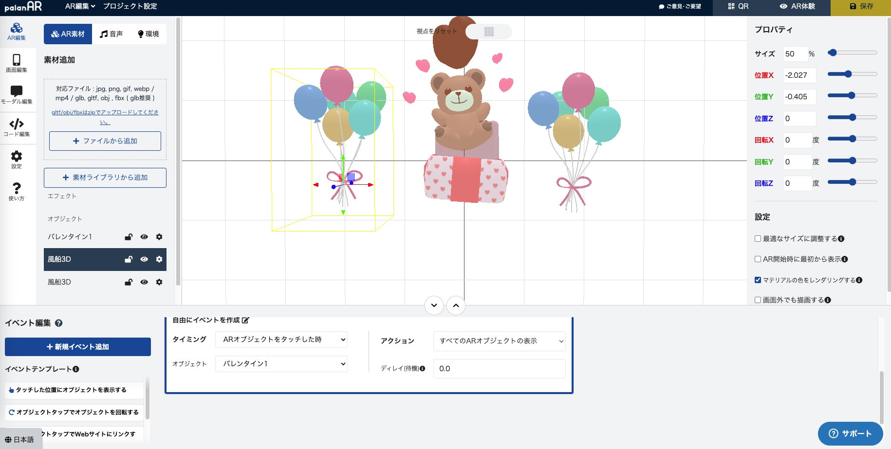 ①Webサービスの「palanAR」でコンテンツを作成します。