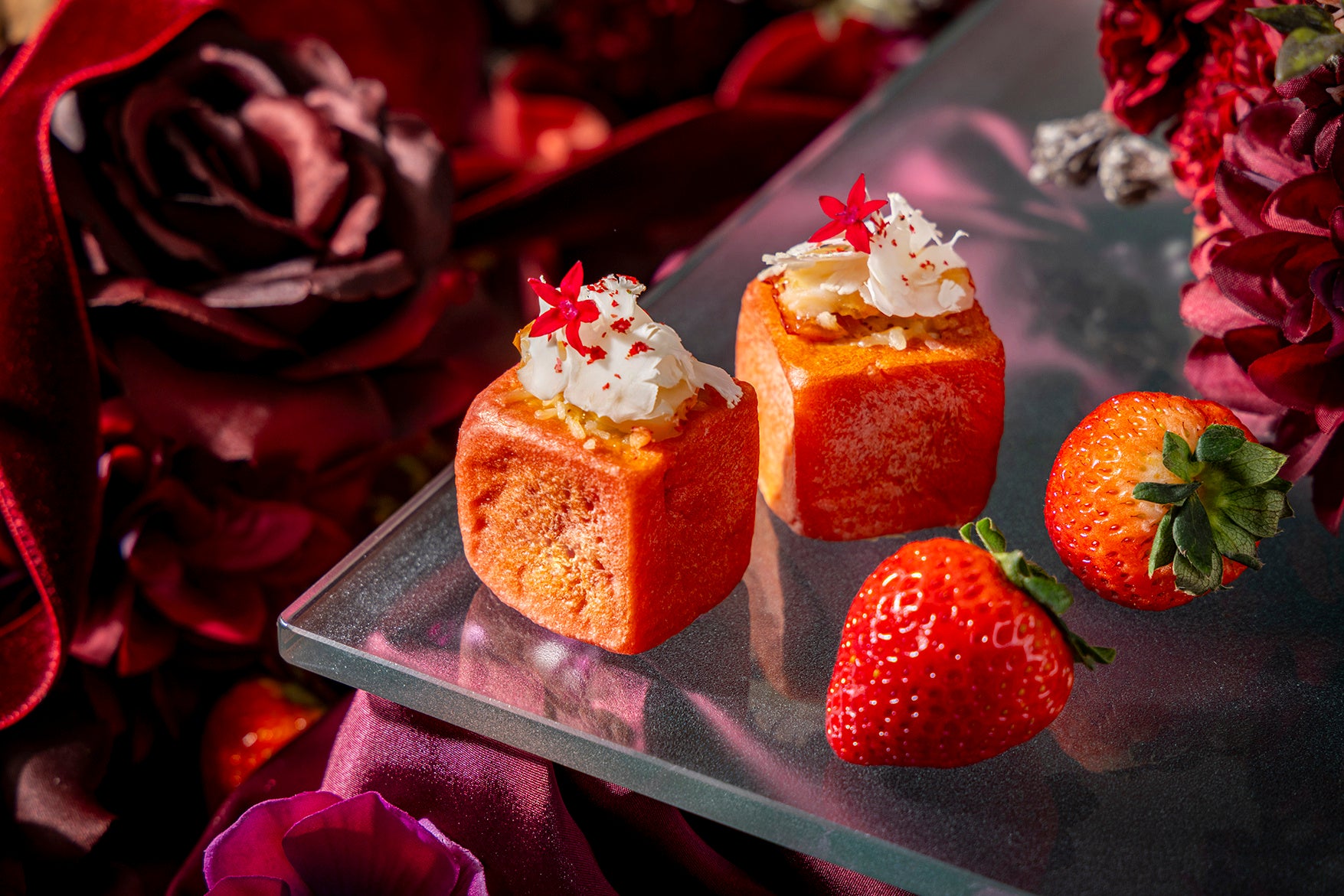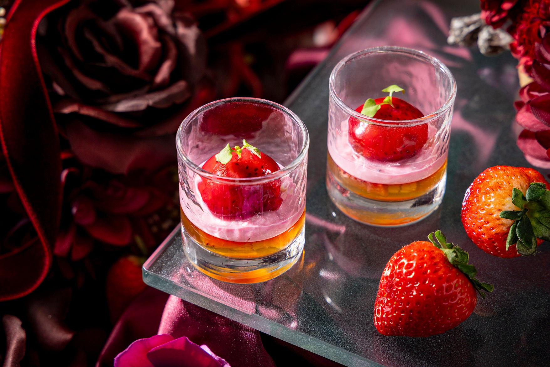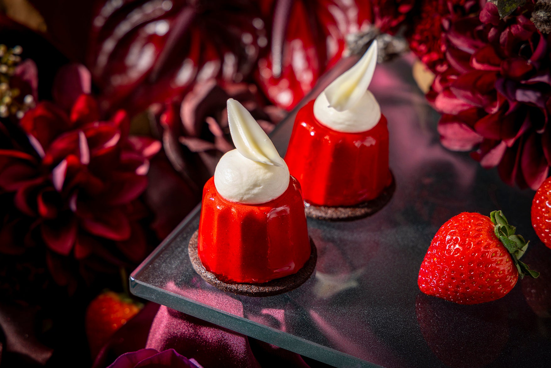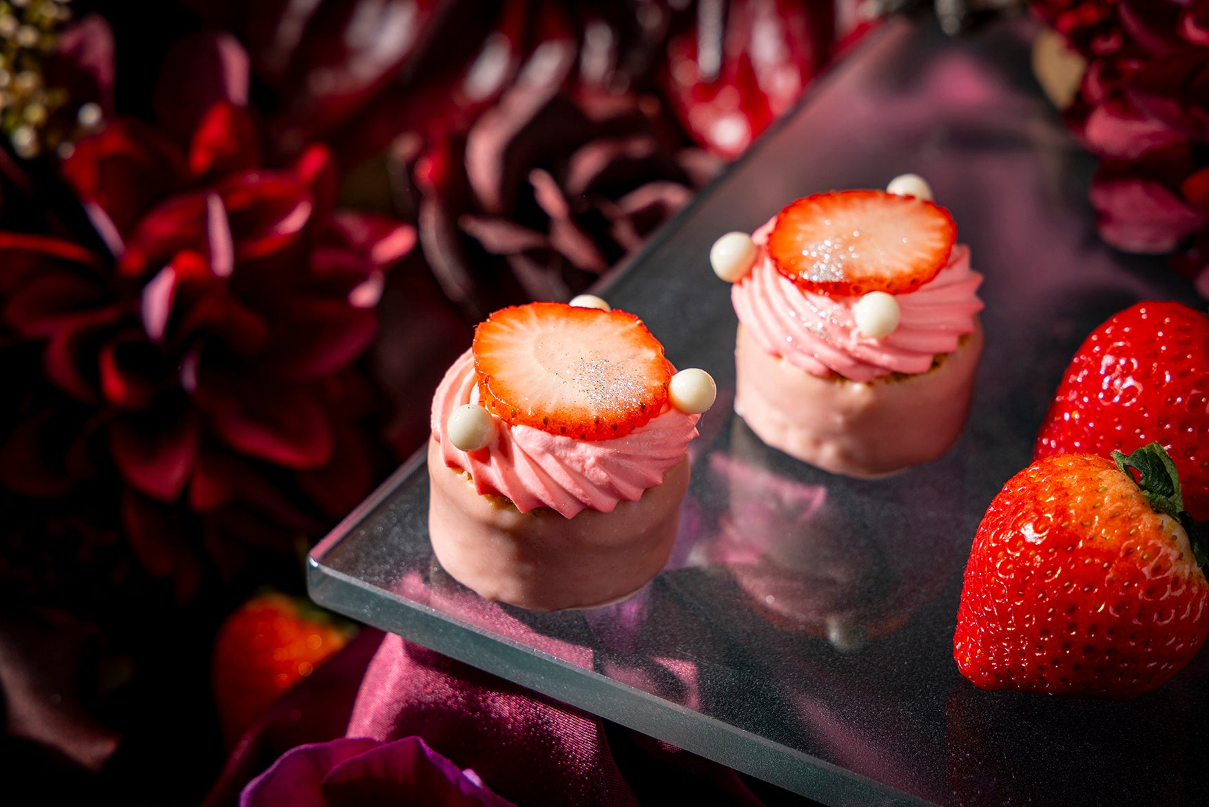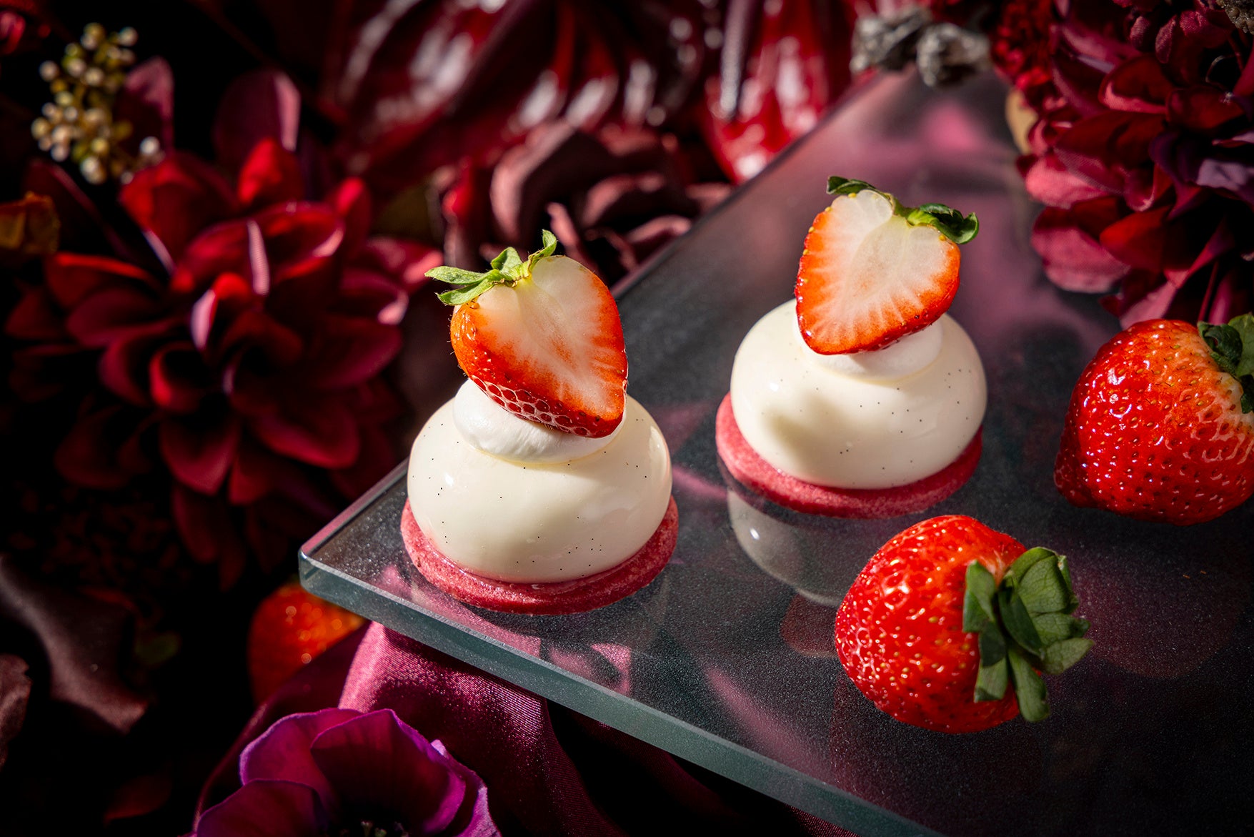 今年のストロベリー・アフタヌーンティーでは、見た目にも美しく、味わい深いいちごの魅力を詰め込んだ“リュクス”な体験をご用意しました。いちごを丸ごとトッピングしたタルト、芳醇なバニラが香るムース、チーズや生ハムと合わせたセイボリーなど、いちごの華やかさを引き立てる多彩なラインアップがプレートを彩ります。濃厚でとろけるようなチョコレートムースやバラの香りを閉じ込めたゼリーなど、バレンタインシーズンをロマンティックに演出するアイテムを加えた、スイーツ5種とセイボリー3種をご提供します。赤と白の世界観が織りなす、豊かな味わいをご堪能ください。開業以来変わらぬレシピで人気のスコーンは、プレーンとキャラメルの2種をクロテッドクリームといちごジャムとともにお楽しみいただけます。