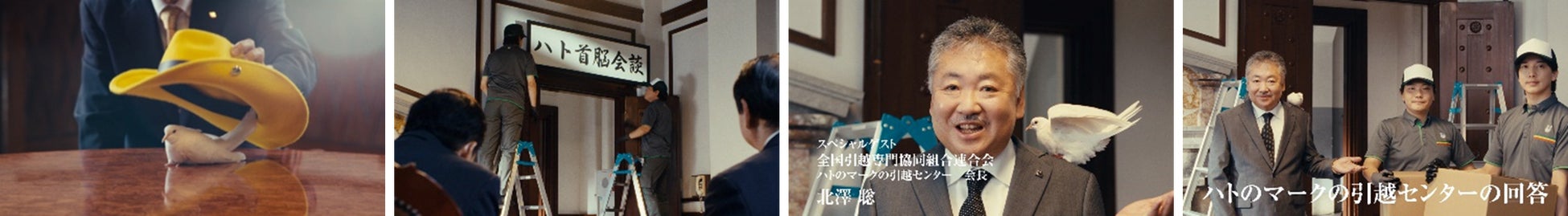 最後は、ハット3社のロゴに、ハトのマークの引越センターのロゴが加わり、動画が締めくくられる。