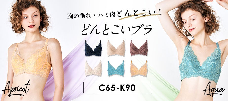 大きなバストもどんとこい!グラマーさんのバストの悩みを解消し、キレイを引き出す大人気フルカップブラ「どんとこいブラ」から夏にピッタリな新色2色「アプリコット」「アクア」が仲間入り。